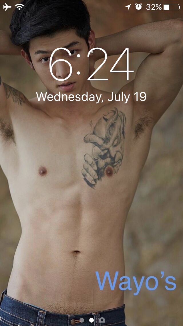 Tôi hi vọng anh ấy sẽ nhìn thấy màn hình nền trên điện thoại anh ấy, mà tôi vừa khóa lại cách đây không lâu. Tôi đã chỉnh sửa hình nền rồi. Nó là ảnh anh ấy với dòng chữ ở trên: Wayo's (của Wayo).