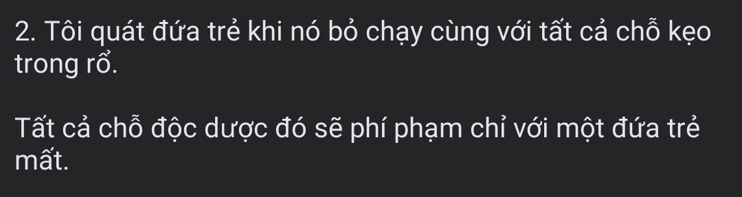 "hi vọng số độc dược đó sẽ được chia đều cho lũ trẻ, cả giáo viên, và cô bảo mẫu."