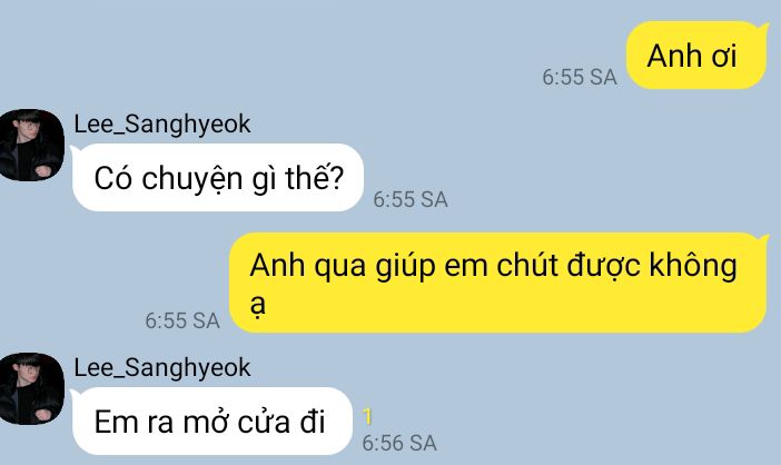 Sanghyeok đang ngồi xem thì bỗng tin nhắn từ em được gửi đến