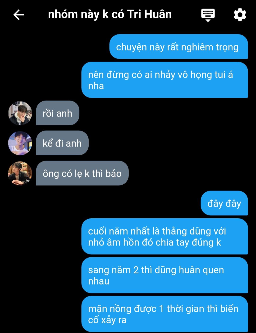 Tuấn Huy to group Nhóm này k có Tri Huân: