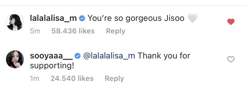 và hàng loạt những bài báo đưa ra nghi vẫn về mối quan hệ giữa hai bên. Jisoo cũng bất ngờ vì Lisa cmt vào post mình