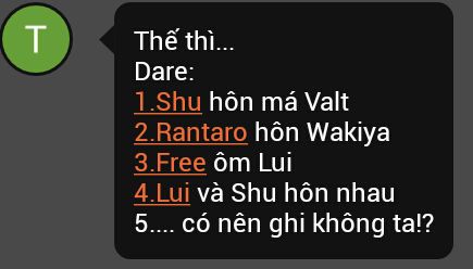 WakiRan: Éo, tao đéo hun thằng vàng khè or mất dạy này đâu! Nụ hôn đầu là để cho Shu cơ.