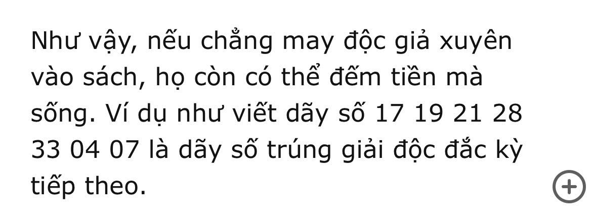 Kể mấy bạn nghe, chương 17 Trình Quý Thanh có càm ràm sao tác giả không cho mấy con số may mắn cho ai xuyên vào thì mua vé số trúng thưởng á. Thế là mình cũng lon ton lấy số tác giả cho đi mua Vietlott, hôm nay trúng thật mọi người à. Khéo chăm edit sau làm tỷ phú =))))))