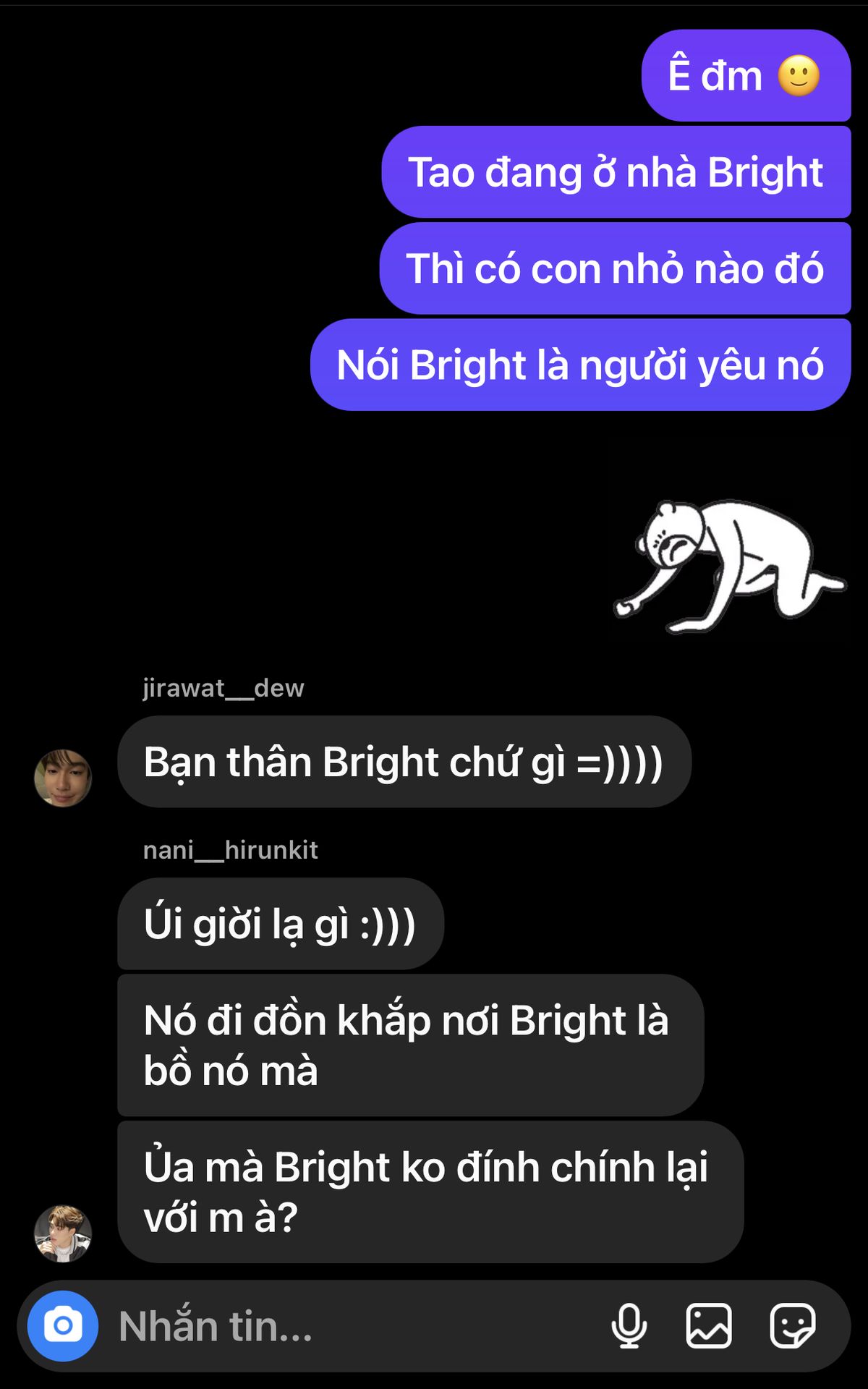 Win đem nước ra thì bống dưng thấy con ả đó ôm ấp Bright mà Bright lại không phản kháng chút nào.