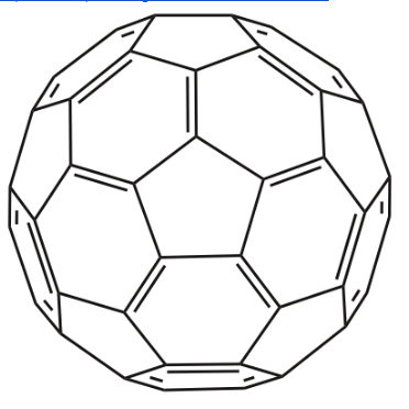 (*): Bucky Ball - Buckminsterfullerene là một loại fullerene với công thức C60. Nó có cấu trúc vòng cầu chì giống như cái lồng (icosahedron cắt ngắn) giống như một quả bóng đá (bóng đá), được làm bằng hai mươi hình lục giác và mười hai hình ngũ giác, với một nguyên tử carbon ở mỗi đỉnh của mỗi đa giác và liên kết dọc theo mỗi cạnh đa giác. (hình minh họa)