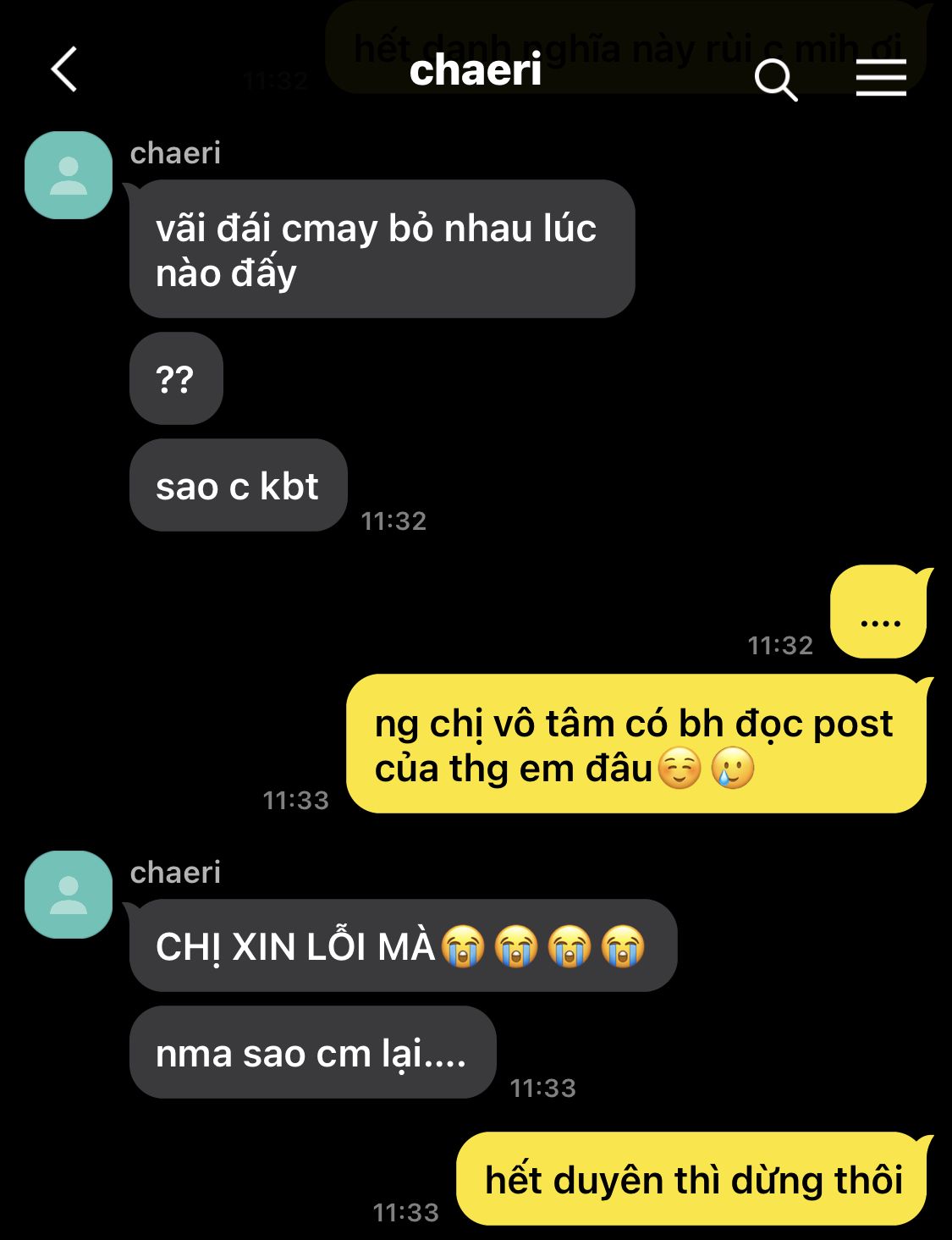 "mấy đứa ơi, chị phải họp với cô tổng phụ trách trường để chuẩn bị diễn, mấy đứa bảo ban nhau nhé, chị không yên tâm nên chị nhờ liyu đến trông" sau đó, chaeri quay qua nói thầm với liyu