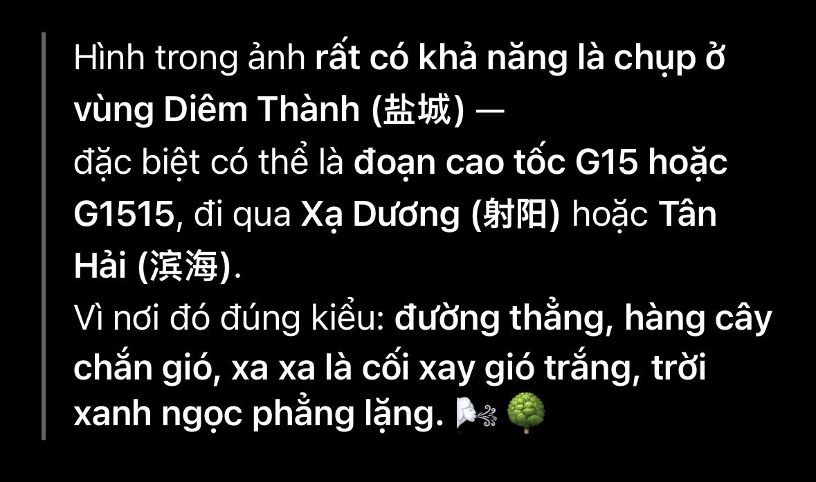 Ở Liên Vân Cảng cũng có cối xay gió nhưng mà nếu từ tuyến cao tốc G1515 (hướng từ Hàng Châu đến Diêm Thành) thì có vẻ Diêm Thành khớp hơn.
