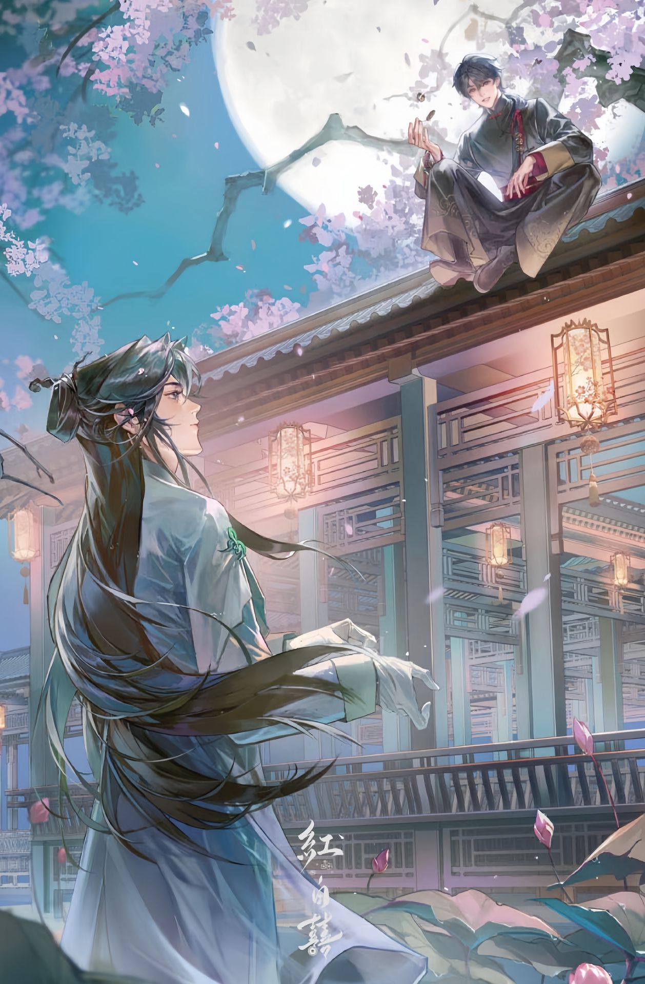 Hai người đứng đối diện nhau, cách một bờ hồ, trăng sáng treo cao, gió đêm lành lạnh.