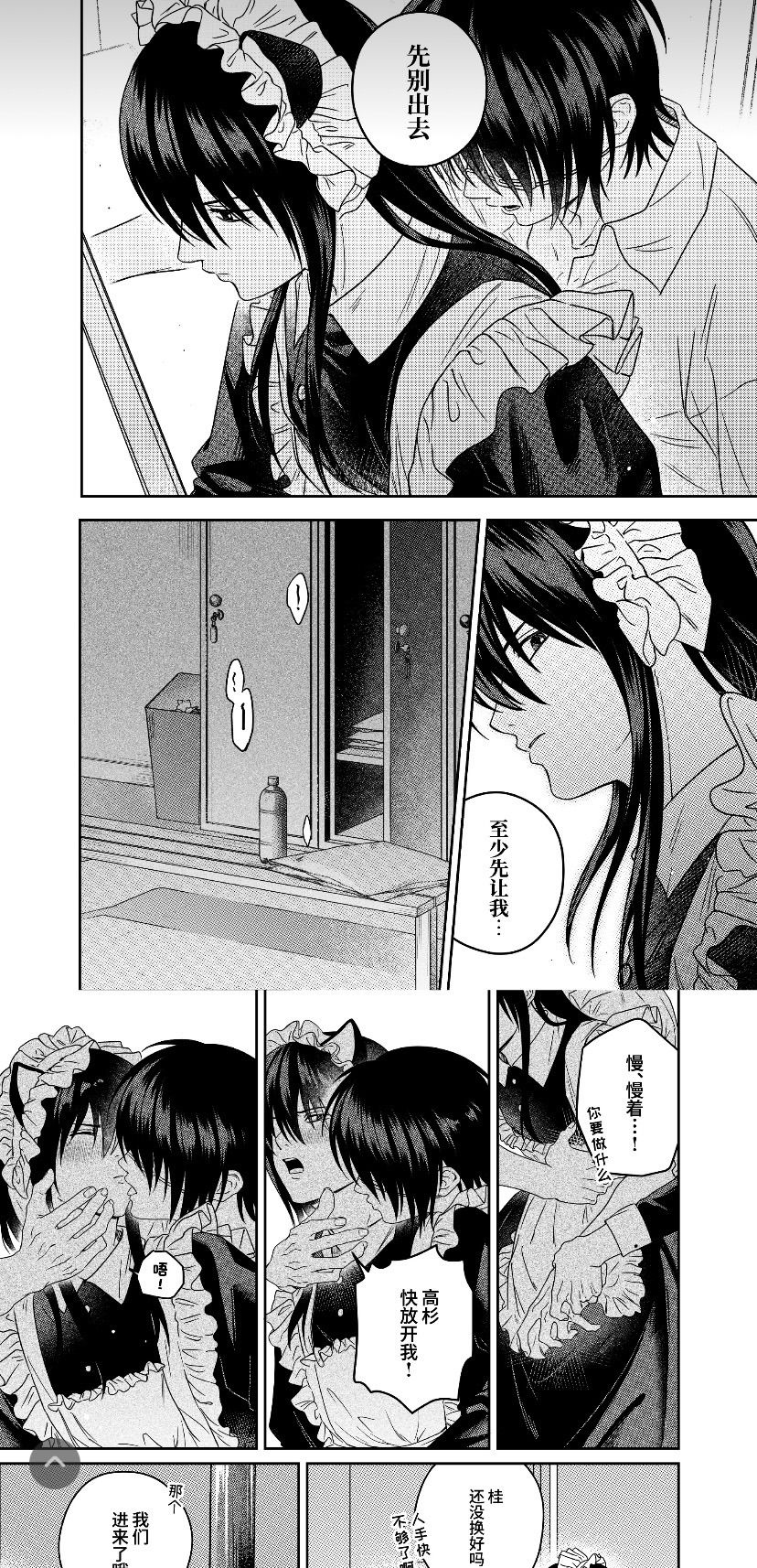 Hai người đang tận hưởng lạc thú có phần hoang dã trơ trọi, nghe được tiếng xột xoạt, Katsura vội vàng cầm lấy quần áo rơi rải bên cạnh lên che lấp cơ thể, lại quên không che bộ phận đang quan hệ của bọn họ.