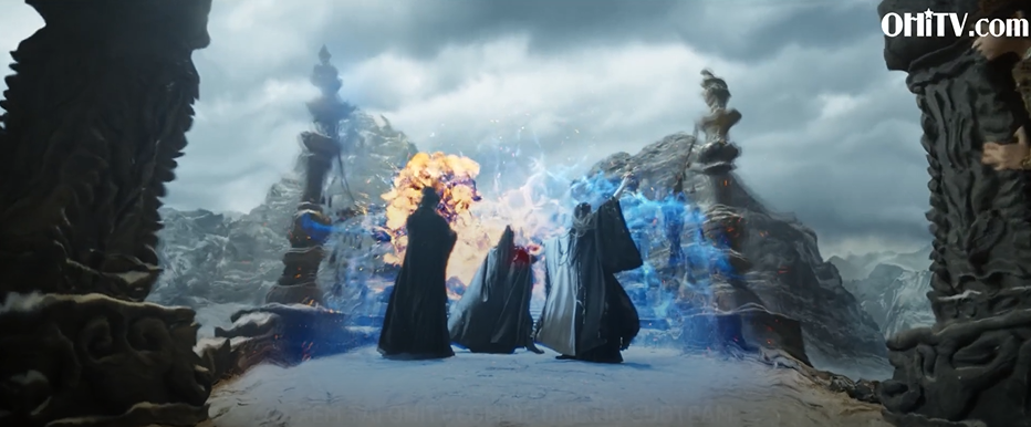 Trác Dực Thần mở mắt ra, biến thành kim sắc, theo sau mũi kiếm thay đổi, đâm vào tay trái của Ôn Tông Du. Vân Quang kiếm phát ra tiếng kim loại va chạm, Trác Dực Thần đem kiếm đâm xuyên qua nội đan của Ôn Tông Du. Toàn bộ cánh tay bắt đầu kết băng và phát nổ ngay lập tức.
