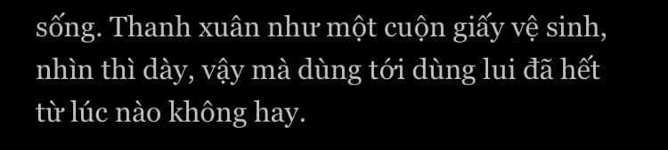So sánh thanh xuân như cuộn giấy vệ sinh có vẻ hơi kỳ lạ, thay vào đó thay thành" Thanh xuân như một cuốn vở trắng" nghe sẽ phù hợp hơn, vở trắng cũng là thứ gần gũi với tuổi thanh xuân mà.