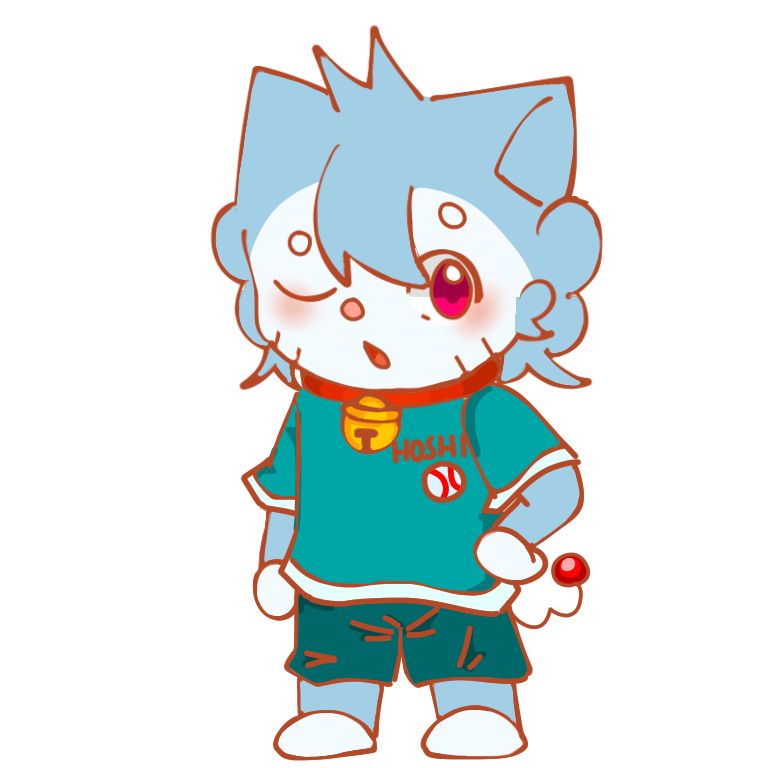 Đặc điểm nhận dạng: Tóc xanh, bông như đám mây. Mắt màu hồng, đuôi hình số 3, màu đỏ. Vòng cổ màu đỏ & chuông màu vàng. Trên mặt có 2 sọc nhỏ dưới cằm mỗi bên mặt.