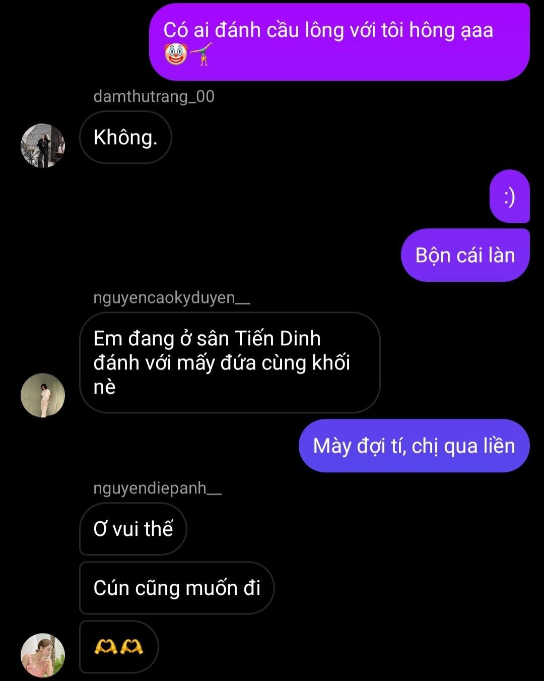 "Chị thích cầu lông không?"