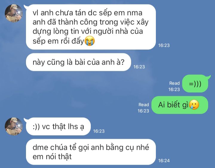 psh: nó bảo anh cứ tin ở nó, và anh cứ có cgiac anh chọn sai mẹ đế chế r