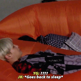 Mà xin hỏi anh Jeon Jungkook vì cớ gì mà anh lại tự nhiên lăn lông lốc ra như thế ??? :D ??? Lăn chán ra đất xong thì lại tiếp tục ngủ khò khò -_- Ôi chết cười mất -_- em thì lại đang nghĩ anh đến lúc ngủ cũng đáng hơi được mùi hương của anh Yoongi nên mới tìm cách lấn lấn tới =)))) tuyệt..