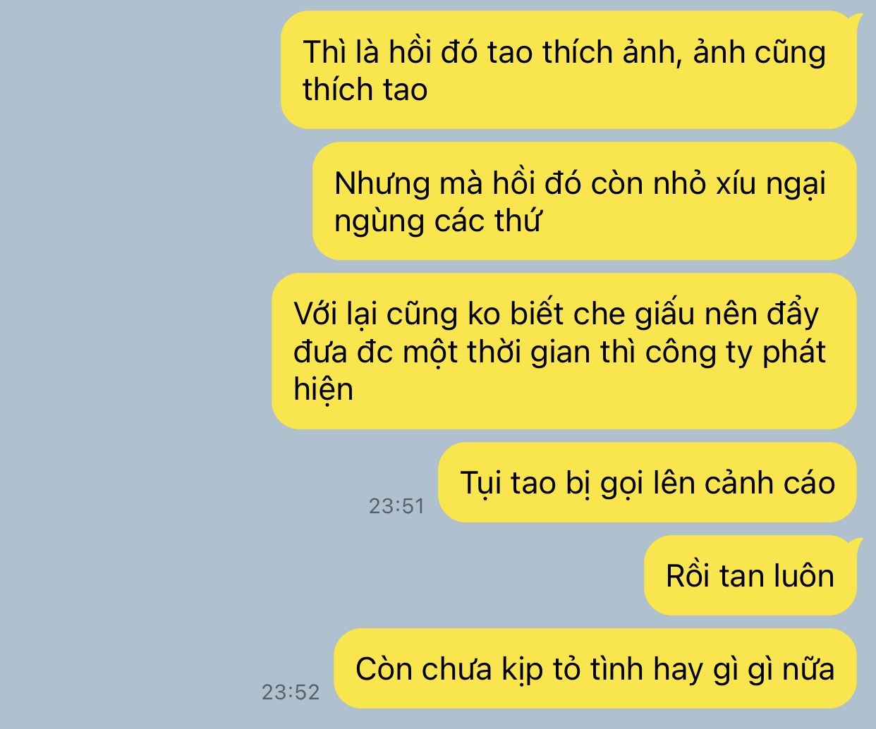 "Em... đã thích anh từ rất lâu rồi. Ngày đầu tiên em vào công ty anh đã giúp em thoát khỏi đám thực tập sinh cũ bắt nạt đó, anh có nhớ không? Ban đầu là biết ơn, sau đó tình cảm này ngày một lớn dần, lớn đến mức chỉ cần được nhìn thấy anh một lần thôi em đã vui suốt một tuần liền. Jung Jaehyun, em thích anh, rất rất rất thích anh."