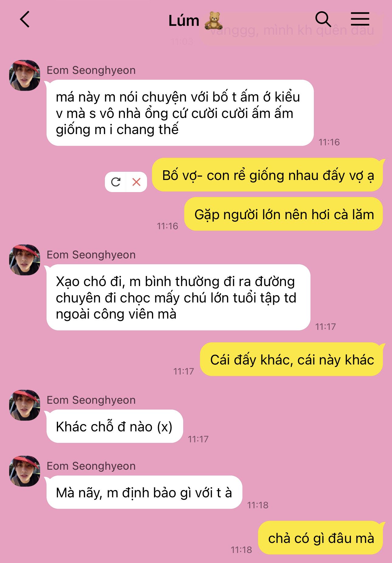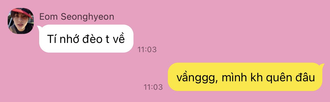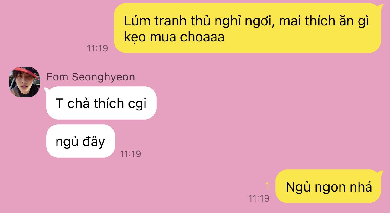 Seonghyeon: "Bộ mày định dọn về nhà tao sống luôn hay sao mà nhiệt tình thế, nè nói trước, nhà tao nuôi tao đủ phiền rồi"