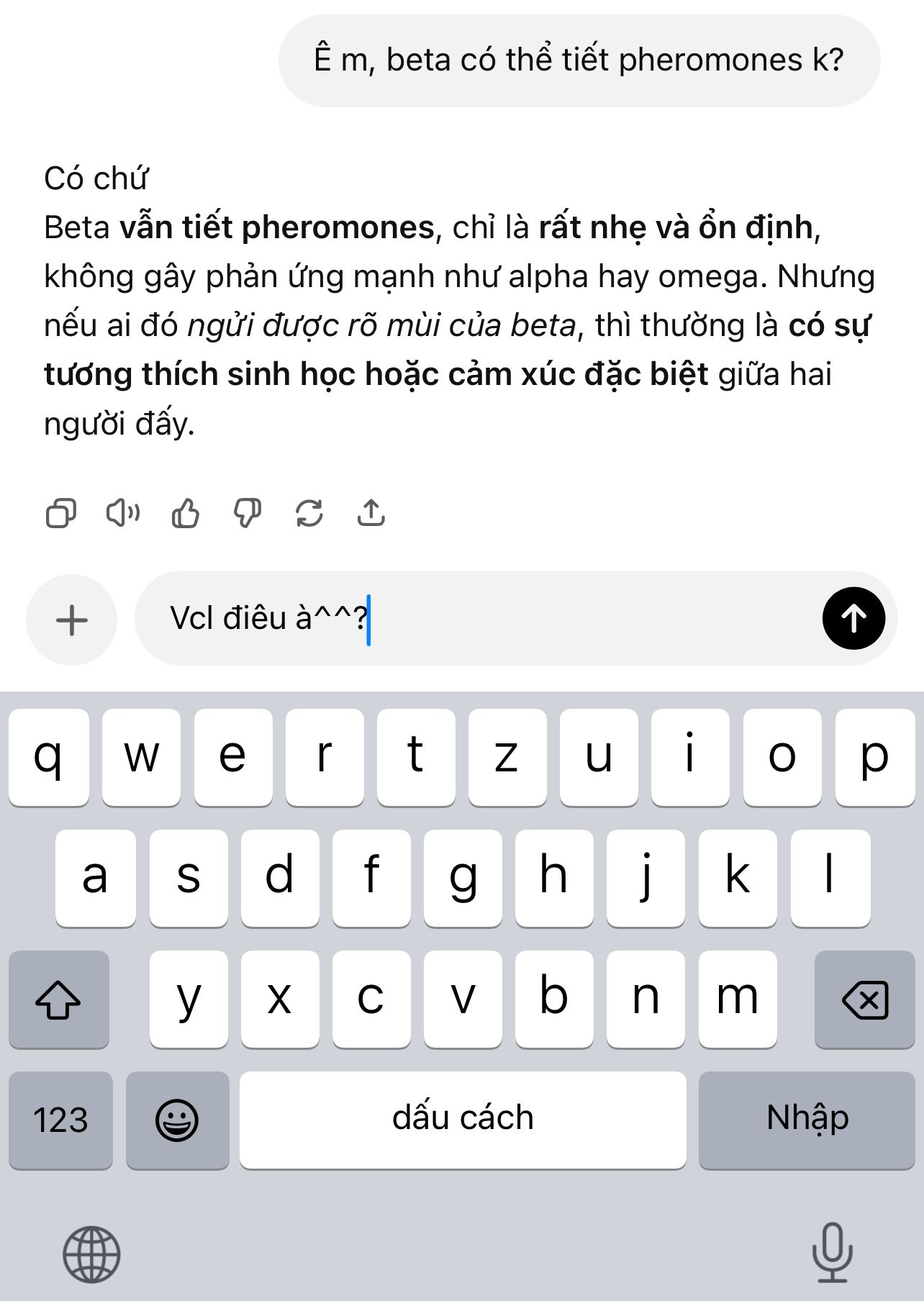 "À, sau đến thì tự đem chai xịt khử pheromones, tao không thích cho mày mượn đồ."