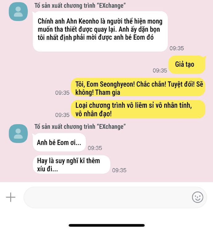 Giải thích đơn giản cho ai không xem show. Các cặp đã chia tay nhau sẽ đến tham gia show: một là lò vi sóng, hai là move on yêu người khác. Ban đầu chưa được tiết lộ về X (người yêu cũ) của bản thân thì mọi người sẽ đều cố diễn như không quen biết