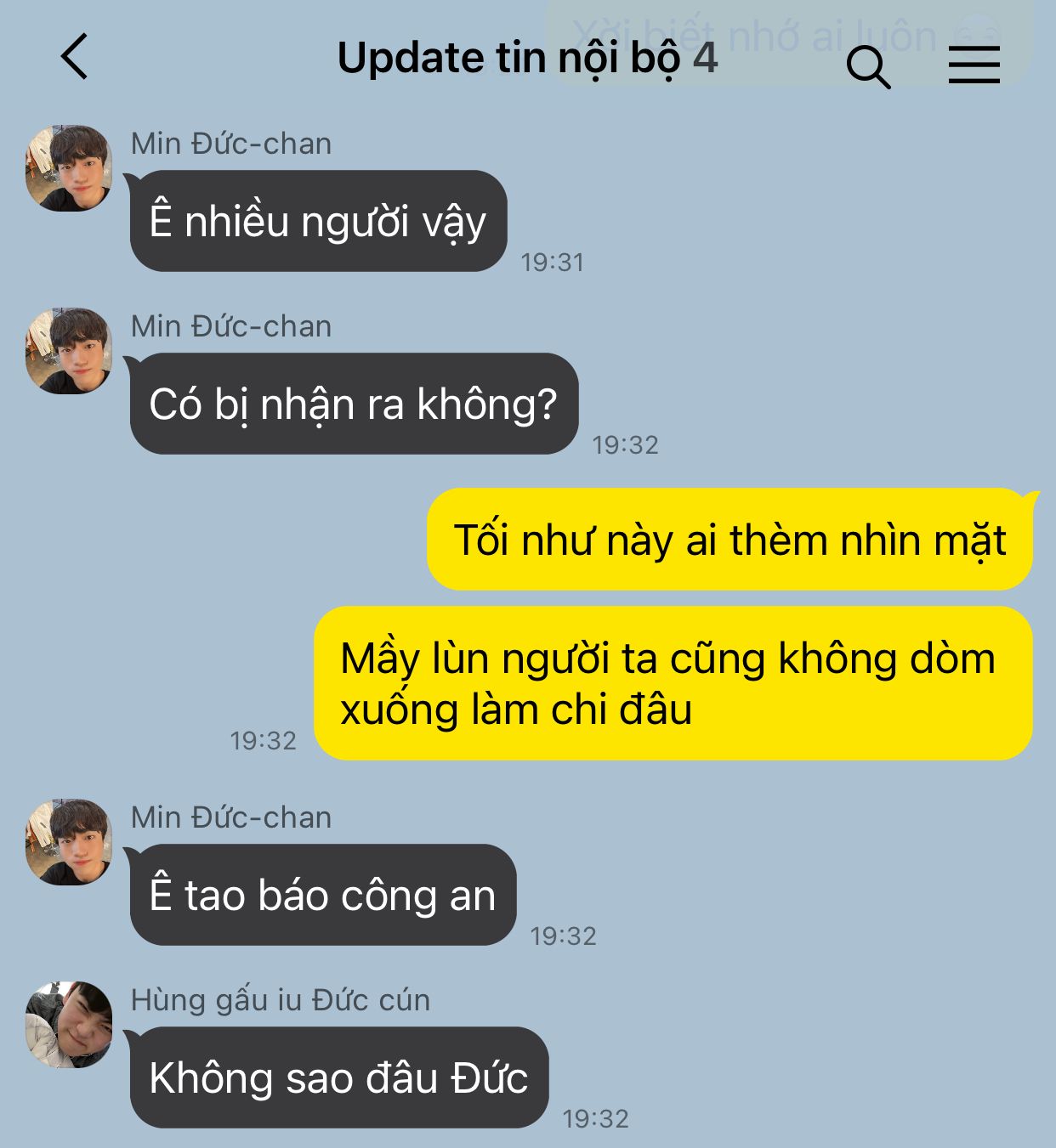 Group 'update tin nội bộ': Hùng, Tuấn, Đức, em Trí
