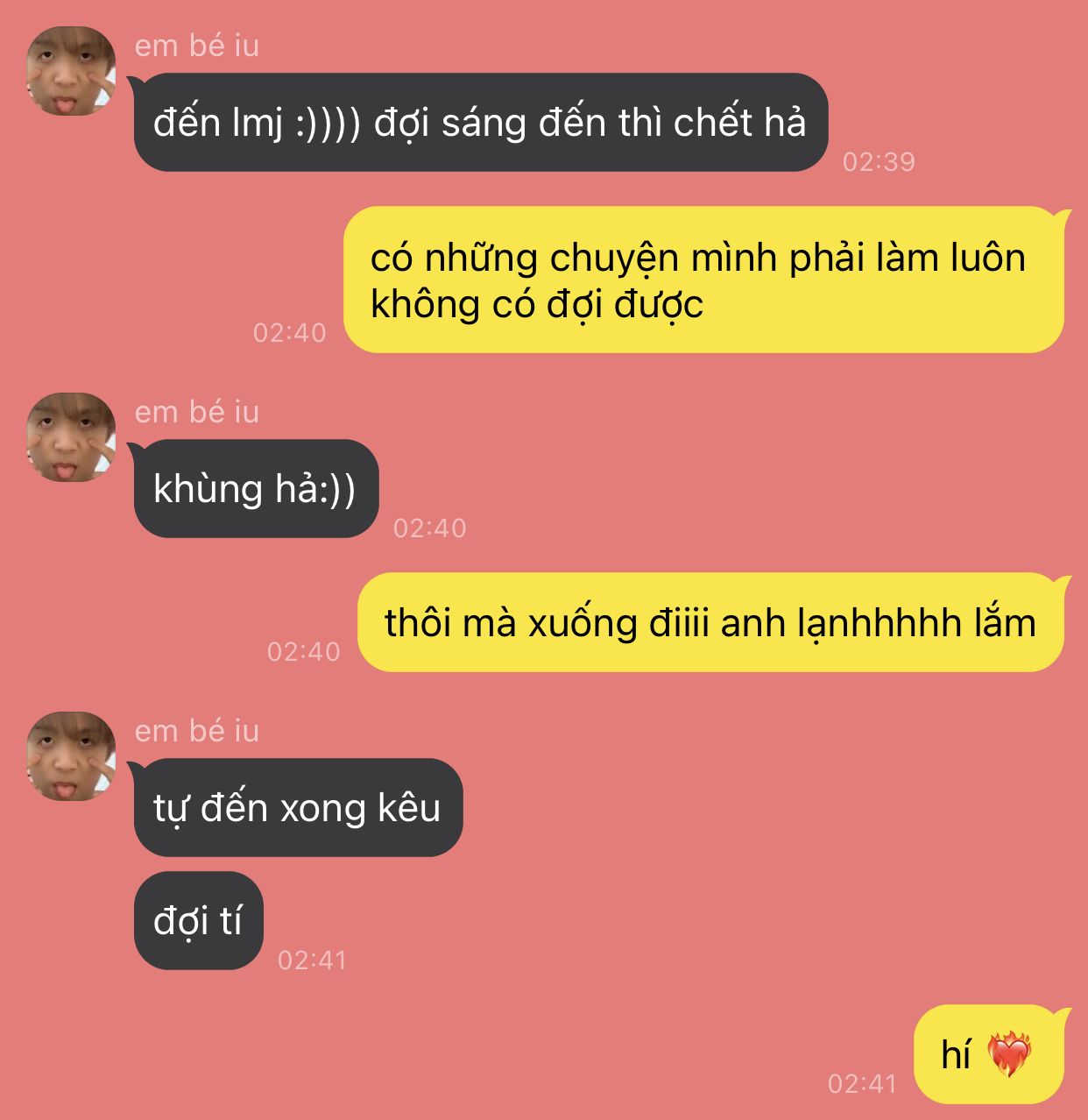 - Lẹ dùm đi anh giai 😊