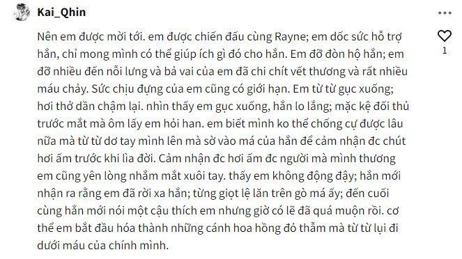 Rayne vô định nhìn vào 1 khoảng không. Nơi đó mọc lên 1 cây hoa hồng đỏ. Duy chỉ có 1 bông. Nó đỏ rực, nở rộ.