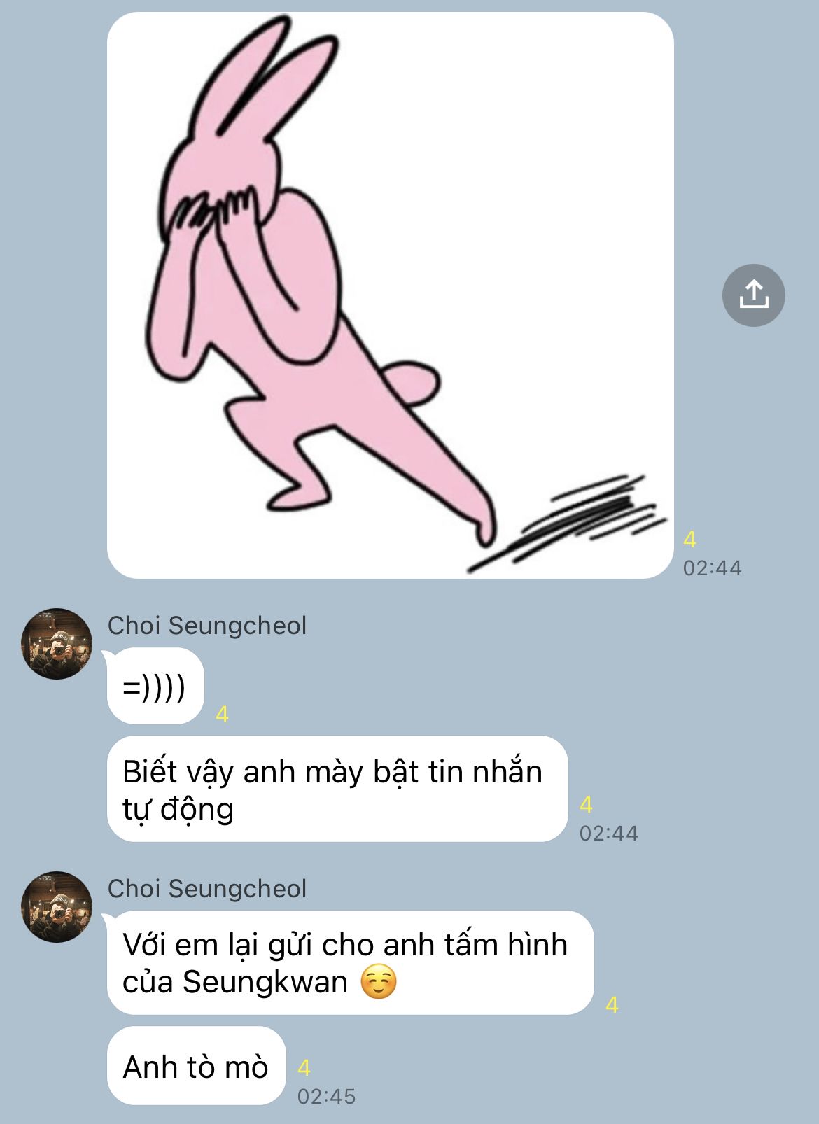 "Thì là rõ mà, từ lúc quen anh Mingyu đến giờ có thấy ảnh làm vậy với ai đâu?"