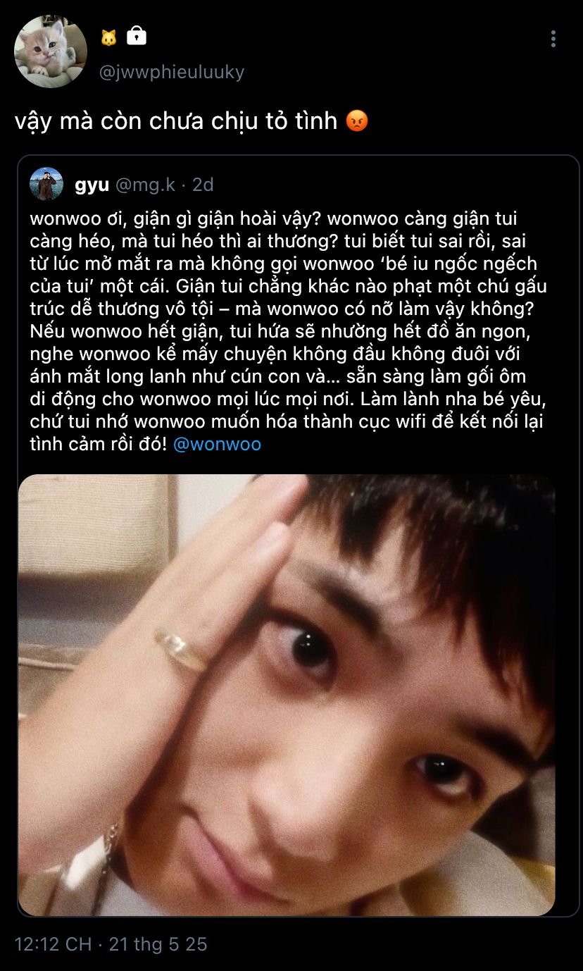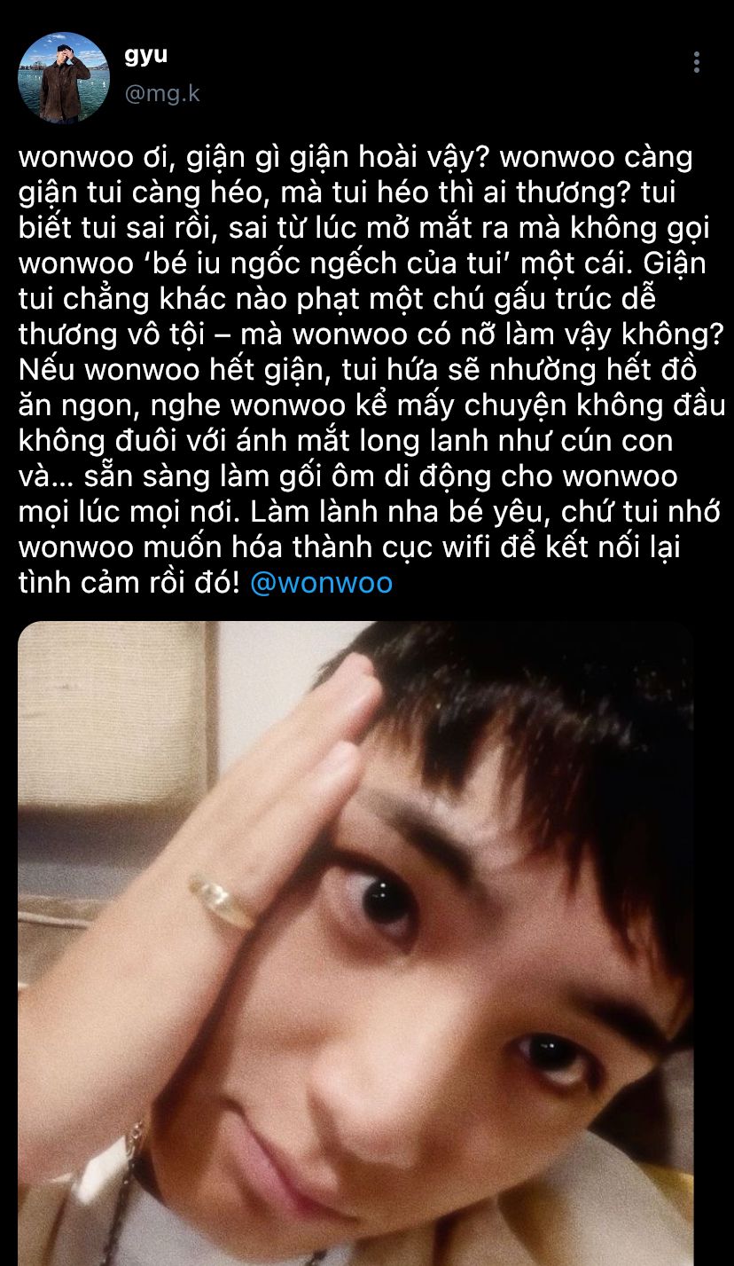ban đầu mình mong fic sẽ dài hơn nhưng có lẽ mình làm hổng được rùi. không phải vì hết chuyện để kể, mà vì mingyu và wonwoo đang đòi kỳ nghỉ phép vì sẽ còn extra đó nha ㅋㅋㅋ