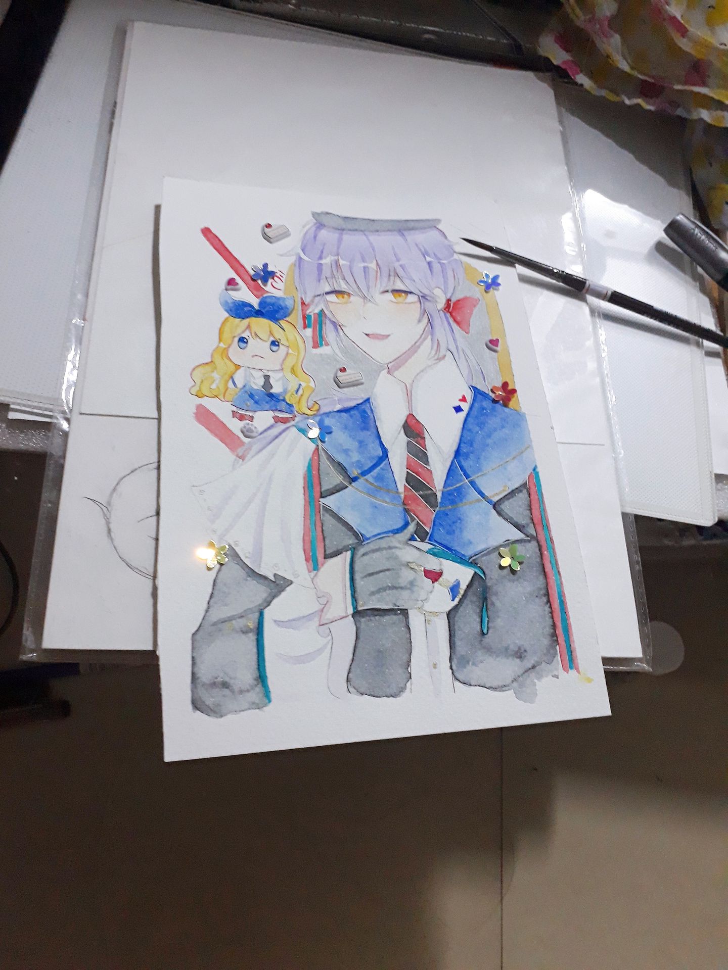 Rắc kim tuyến hột xoàn đồ lên cho người ta đỡ chú ý vào tranh vì nó xấu quá :((((