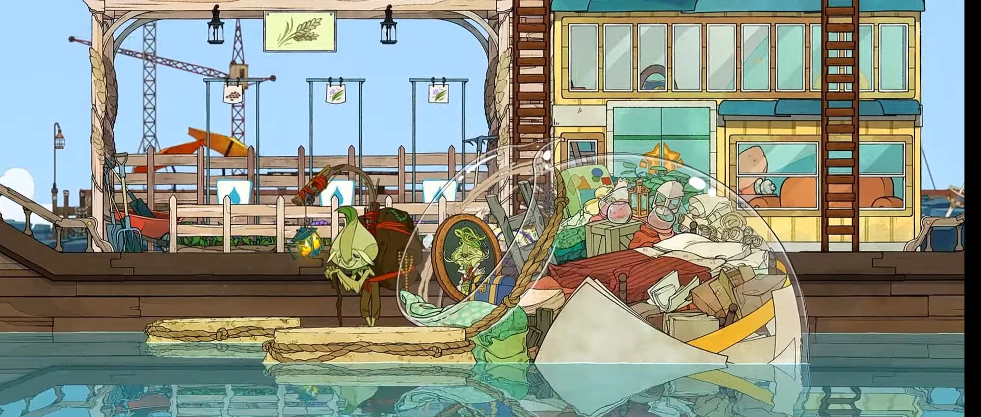 Hoa neo thuyền của mình tại một bến đỗ gần đó và cùng Mun đi tới một cửa hàng với người chủ của cửa hàng một là một chú sóc to lớn trông rất đáng yêu.