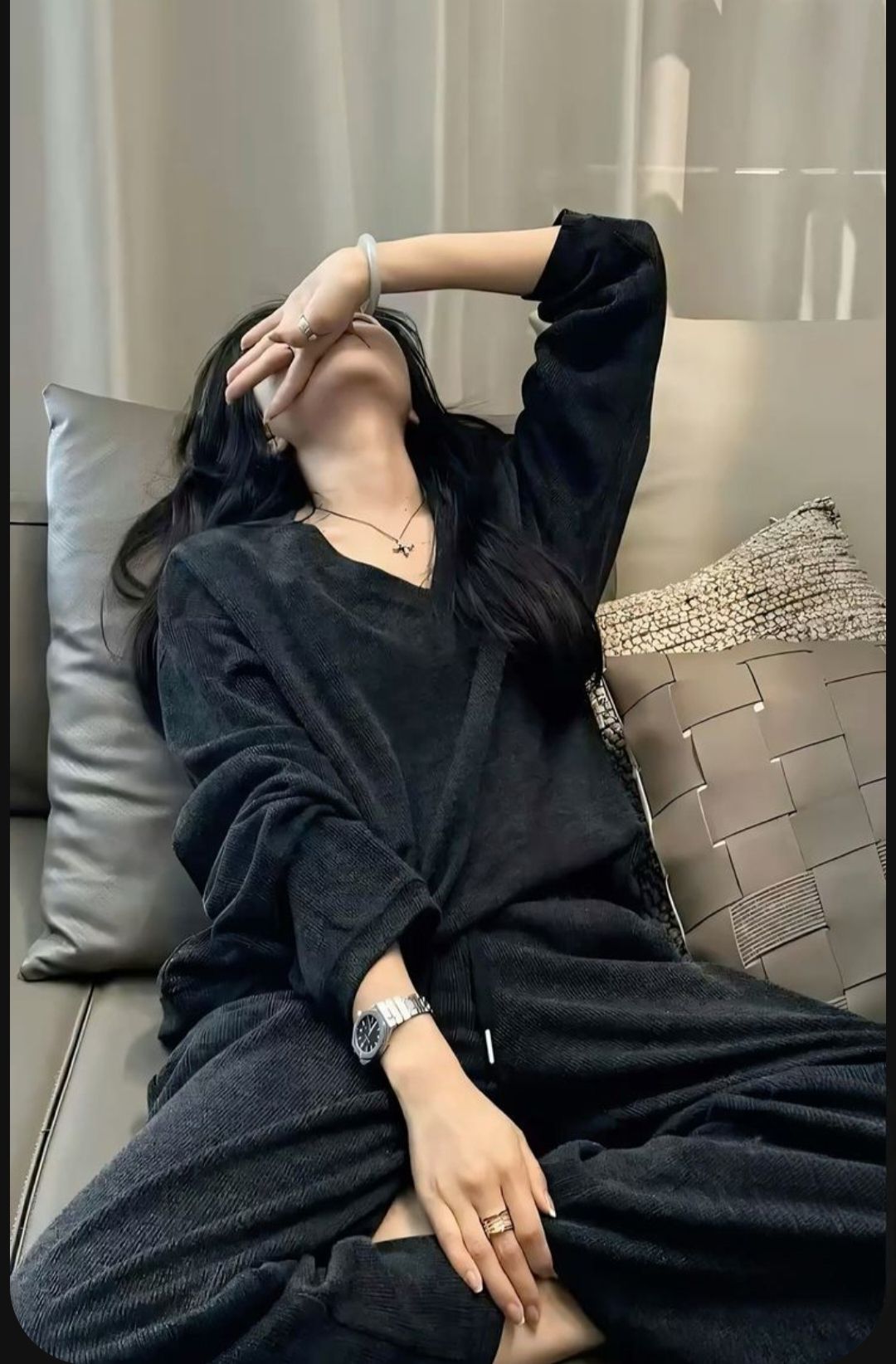 Vì mới tỉnh ngủ nên tóc Nhật Lam đang xả dài chứ không có buộc lên như thường ngày..