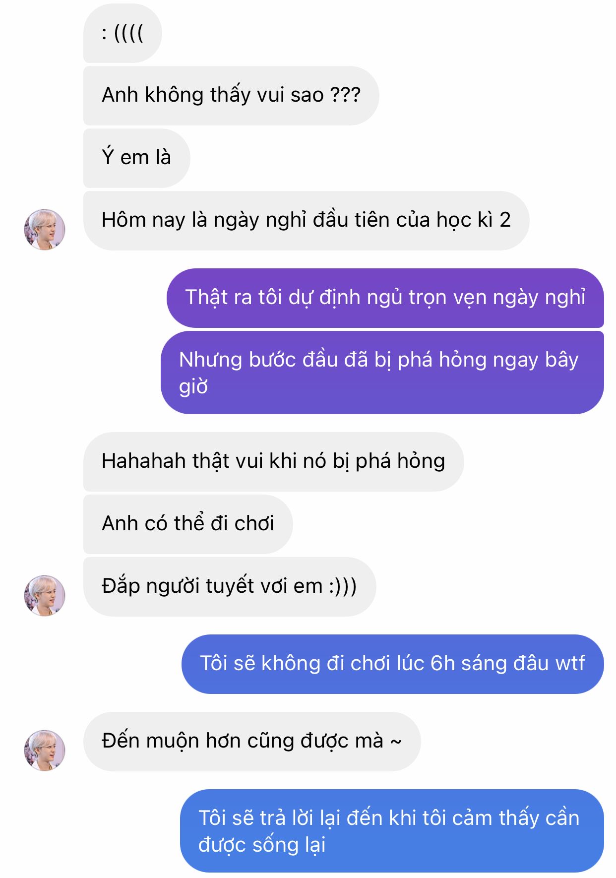 "Này, đừng có nói từ 'bạn bè' bằng cái giọng gớm ghiếc đó"
