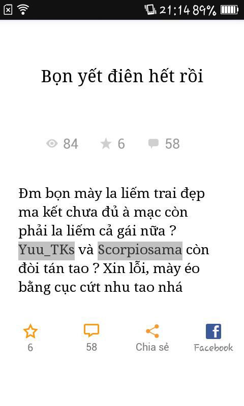 - Tôi ghét cái kiểu viết xong rồi chửi thẳng vào mặt ấy nhé! Còn hơn kiểu đá xéo háng :)