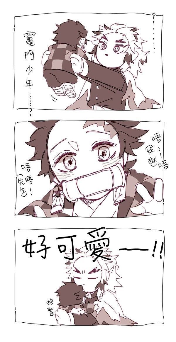 "Grư... Grư...!! Grư... Grư.. !" Cậu vừa nói vừa nhảy vào người Rengoku, nhìn ra phía cánh cửa. Thấy cậu làm vậy , anh cũng khá tò mò và khó hiểu nhưng trông cậu cũng dễ thương.