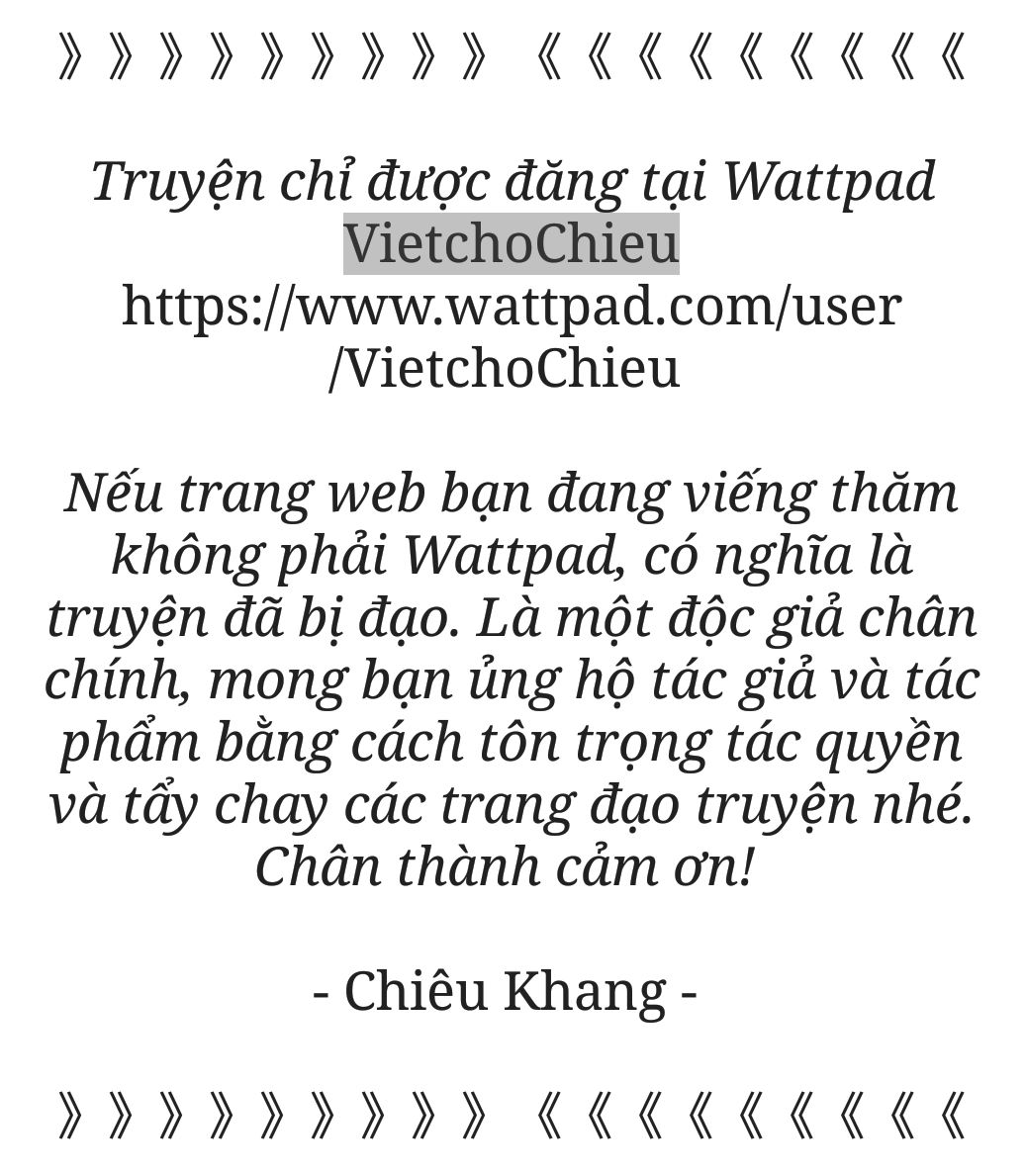 Nếu trang web bạn đang viếng thăm không phải Wattpad, có nghĩa là truyện đã bị đạo. Là một độc giả chân chính, mong bạn ủng hộ tác giả và tác phẩm bằng cách tôn trọng tác quyền và tẩy chay các trang đạo truyện nhé. Chân thành cảm ơn!