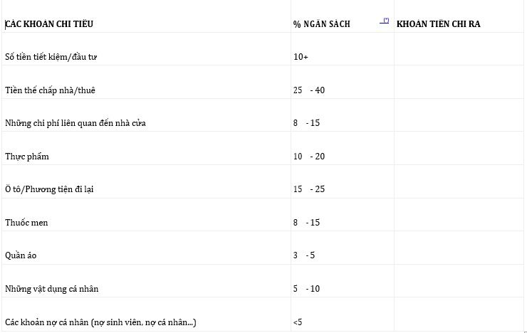 NHỮNG KHOẢN CHI TIÊU HÀNG THÁNG