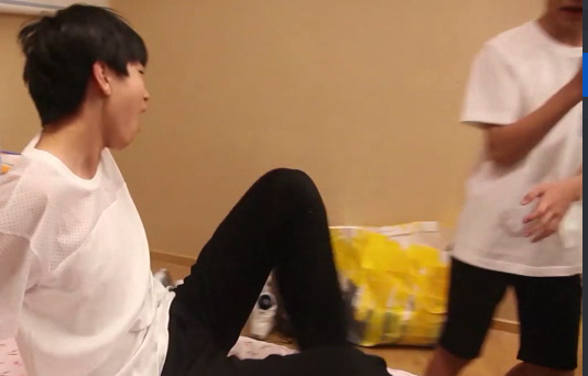 Chúng ta cùng nhìn tiếp, Tiểu Khải ép chân cho Nguyên Nhi, nhưng lúc đó đại cưa có quay đầu nhìn em một cái, tại sao lại quay đầu nhìn em ? Ta có hai suy đoán, một là muốn để cho em thấy, hai là đại cưa muốn quay lại nhìn biểu tình của em, xem em có hay không "ghen" nha, nhưng rất tiếc, bạn boy sống ảo bên kia chỉ chăm chăm chơi địn thọi thoi ಥ_ಥ