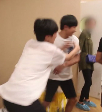 Lúc này em út nghịch đại cưa, sau đó bỏ chạy, bị đại cưa chạy theo tính bắt về, thay vì nói là bắt, không bằng nói là ôm, nhìn hành động của Tiểu Khải xem, rất rõ ràng là động tác muốn ôm em vào ngực, hơn nữa làm rất nhuần nhuyễn rất thuận tay, nếu như không phải Dương Dương nhanh chóng né ra, đoán chừng liền bị đại cưa ôm vào lòng ròi.