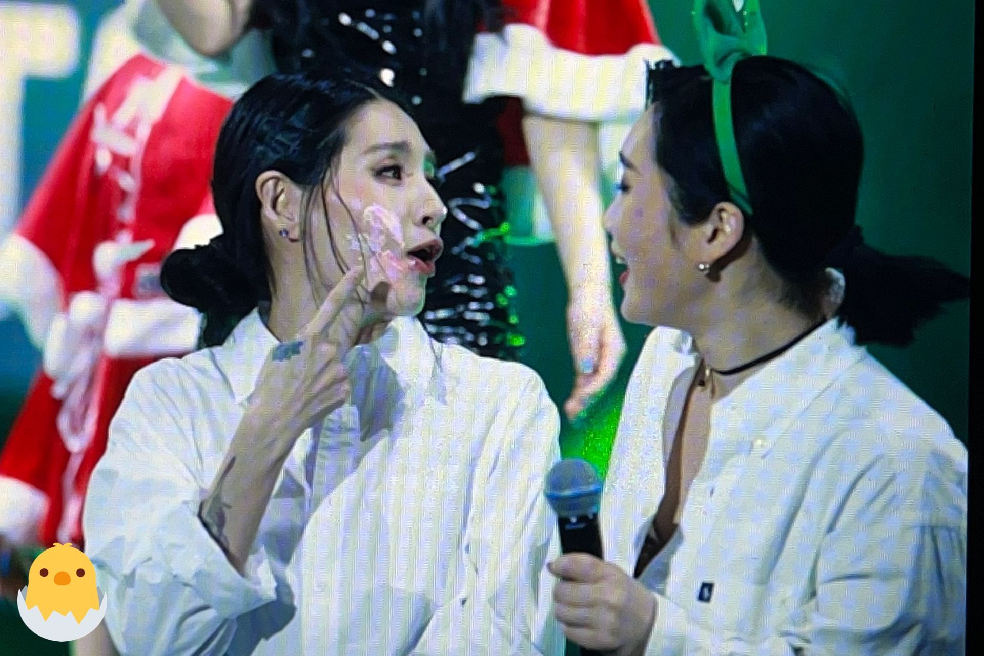 Hôm nay hai chị ít tương tác nhưng mà về độ hề thì vẫn khớp nhau lắm ạ.