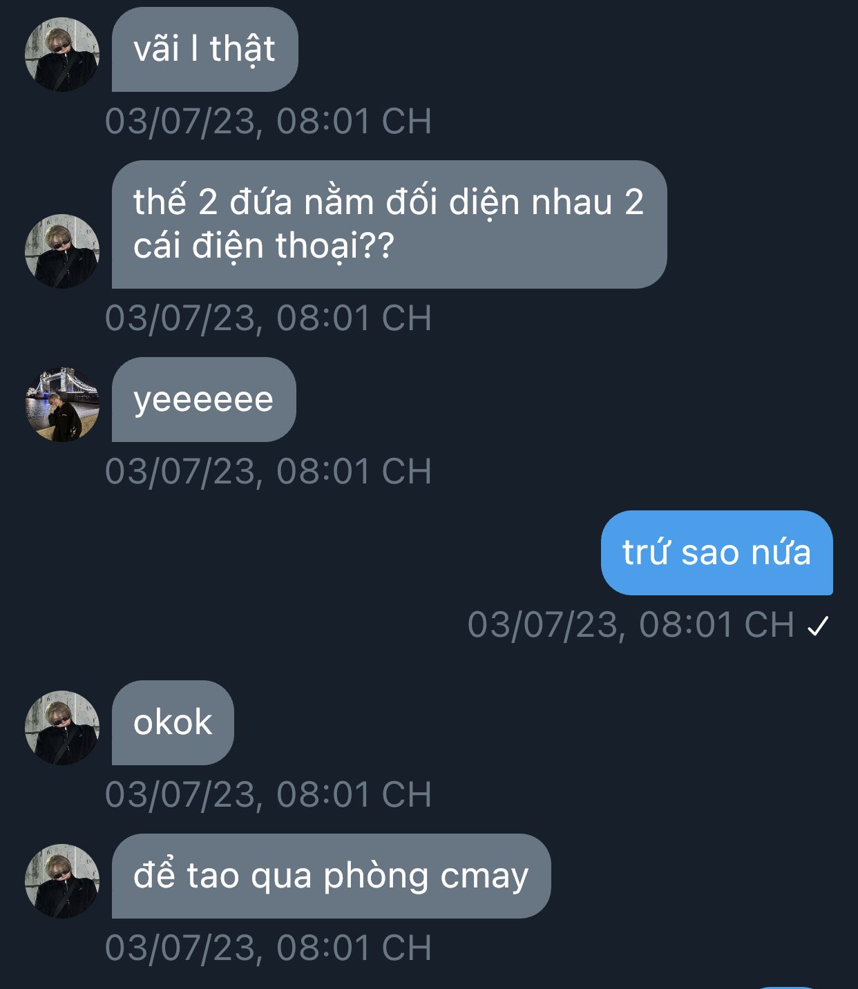 ý là đang ở cùng nhau mà mỗi đứa cái đthoai ấy ạ?