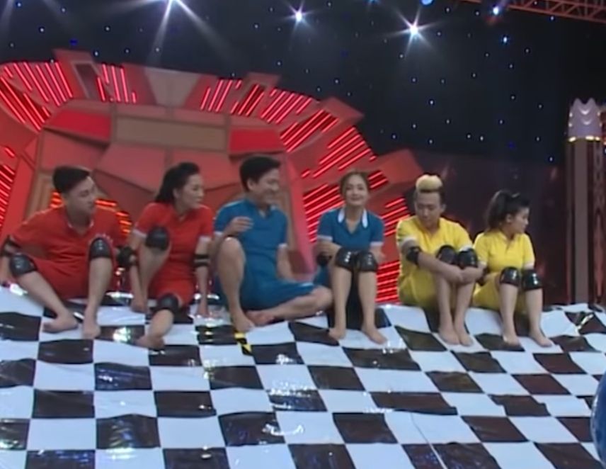 Đang ngồi nghe phổ biến luật chơi của chú Chí Tài rất châm chú nha.