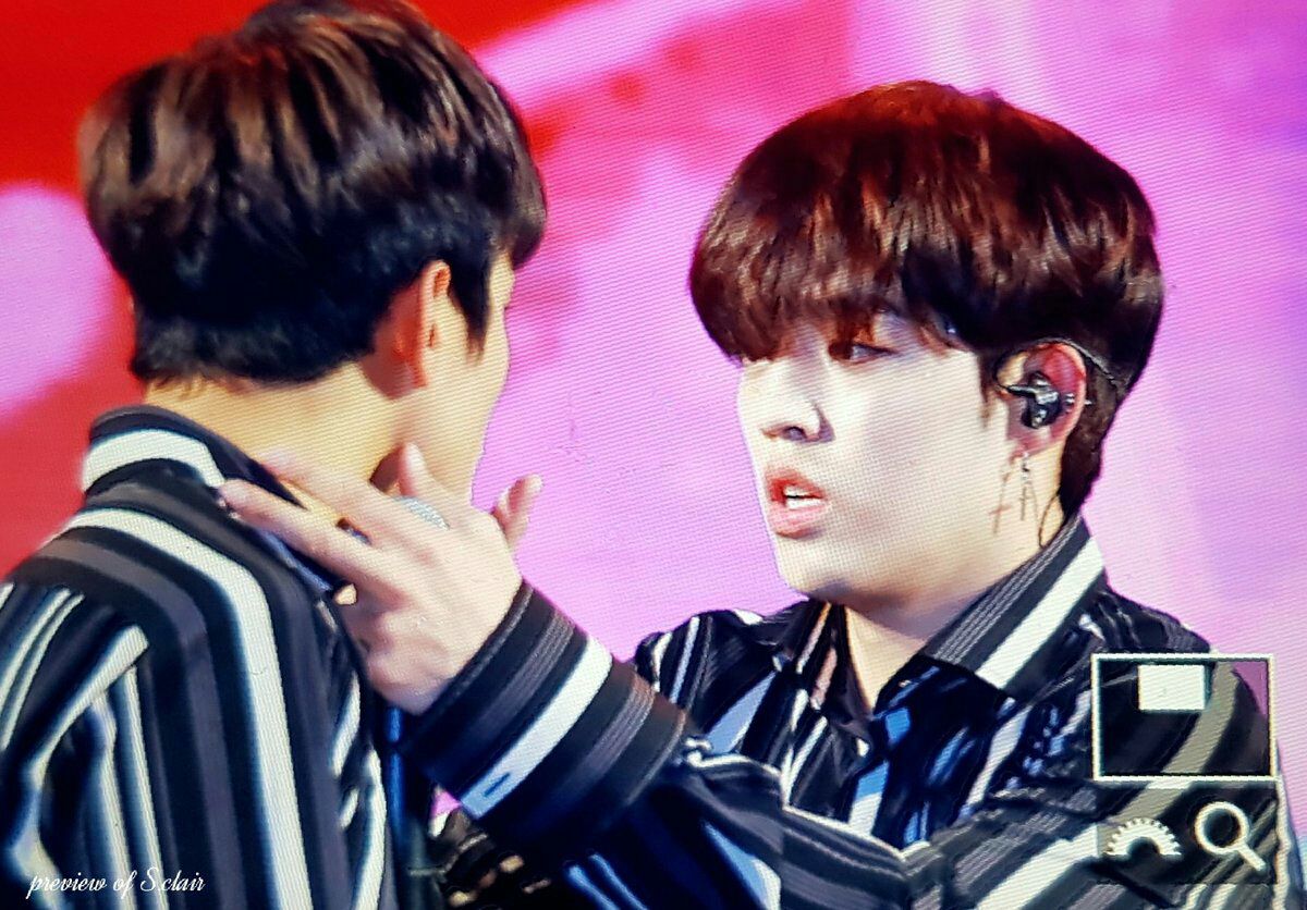 Còn đây là lúc đang diễn, mic của Seokmin hình như có miếng sắt, làm cậu bị cứa tay. Sau đó Seokmin lấy tay đưa lên mặt, nên mặt bị dính máu. Seungcheol đang nhảy nhìn qua, thấy em mình có vết máu trên mặt, lập tức hốt hoảng. Mà sao không hoảng cho được khi Seokmin lại có máu hiếm (có RH-). Vừa hết bài là Seungcheol bay lại chỗ cậu em kiểm tra ngay, lấy tay chùi máu, "Sao thế, bị thương gì thế, sao máu me thế này?". Seokmin mới đưa tay bị cứa sâu hoắm của mình ra, vừa giải thích vừa cười cười "Là tay anh ơi, có xíu hà". Seokmin ngốc lắm, bị thương thế, máu hiếm thế vẫn cười đùa. Dĩ nhiên Seungcheol vẫn chưa yên lòng, anh dặn người lấy khăn đưa cho Seokmin, lúc vào cánh gà đứng nghỉ giữa bài cũng kể với Jeonghan, kiểu như "này, Seokmin bị chảy máu, tớ lo lắm".