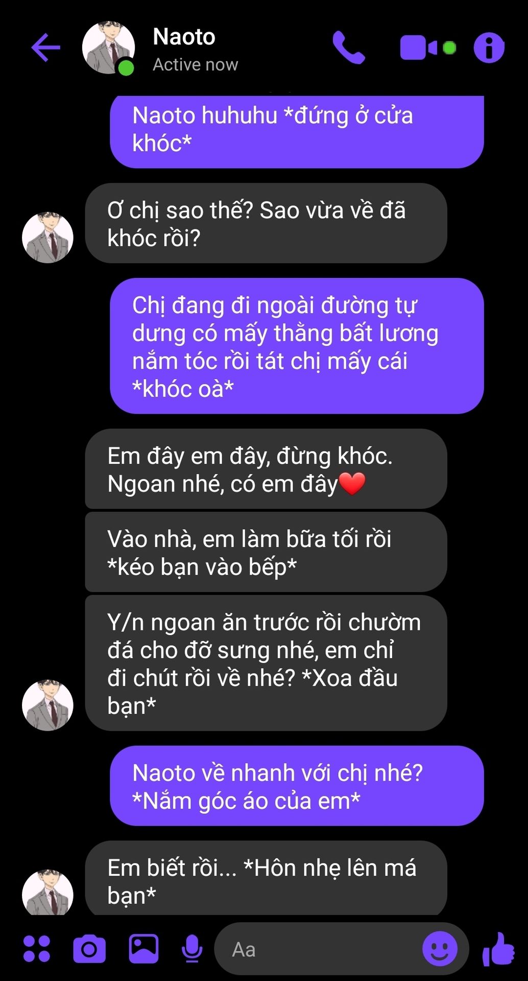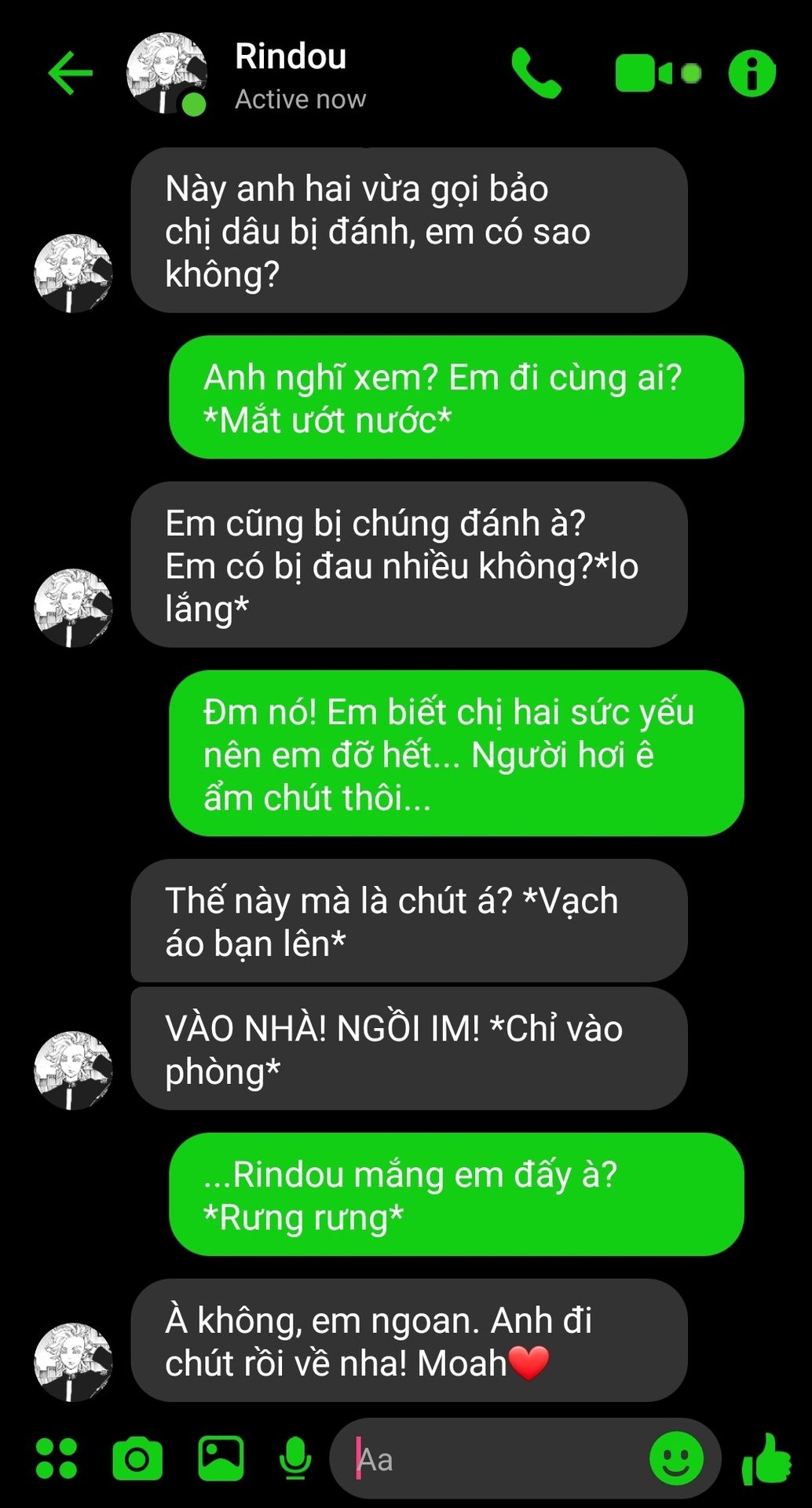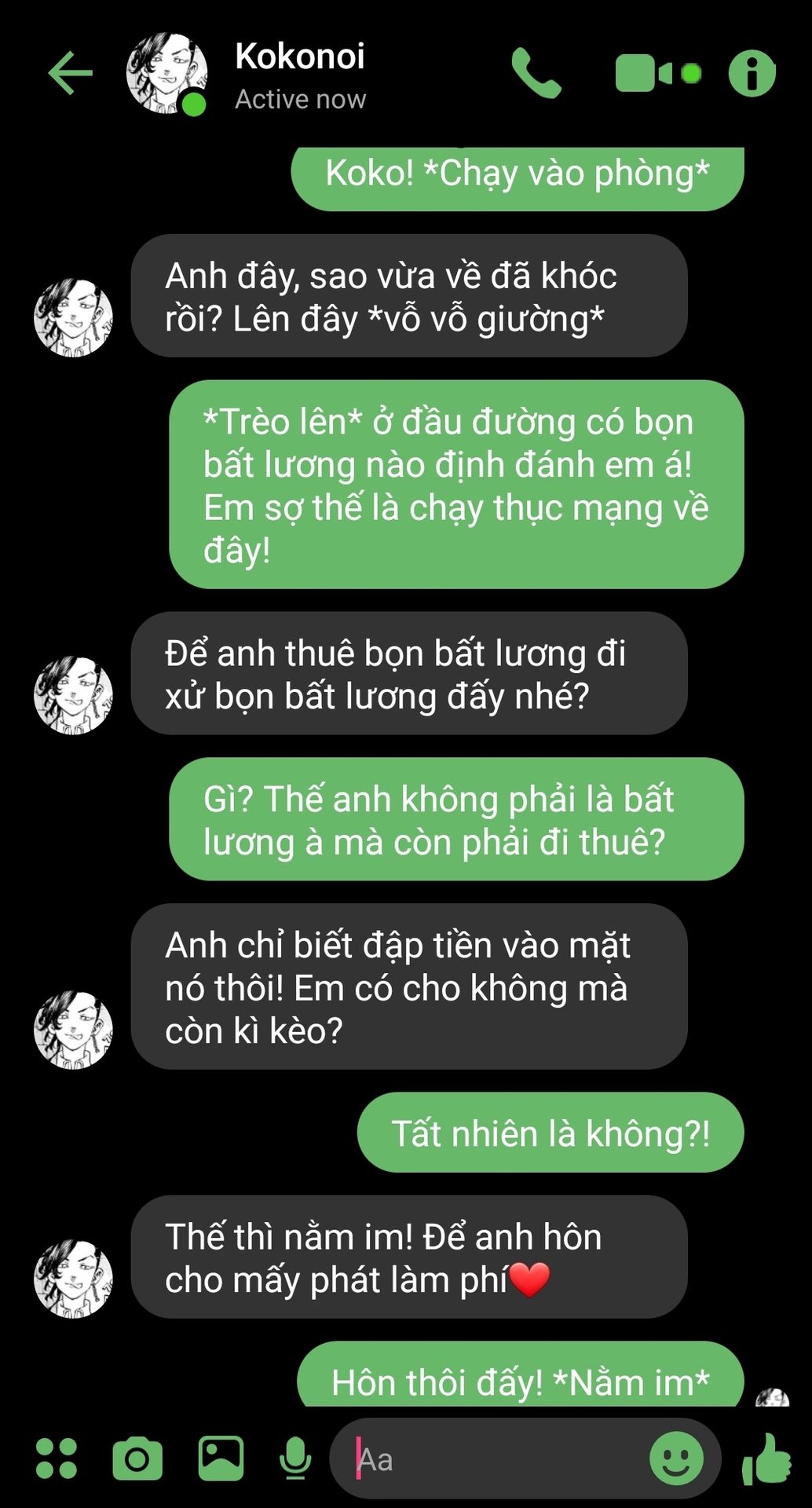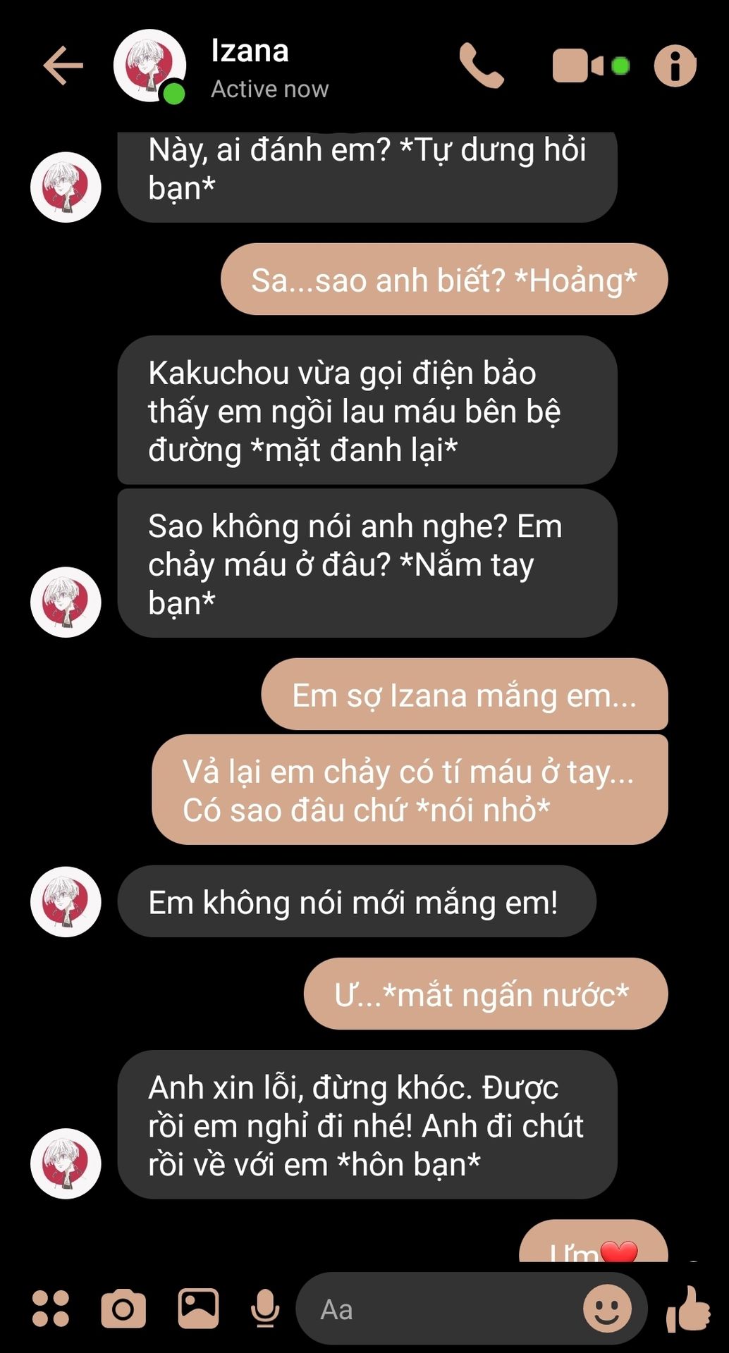 Bên ngoài anh bạo lực nhưng về nhà anh cưng bạn như vàng như bạc. Thế mà bạn vị một thằng ất ơ đánh. Làm sao anh chịu được chứ, cảm giác tệ hơn cả lúc anh thấy Rindou bị Angry đấm cho phát gục luôn... Anh bảo đi mua thuốc là nhưng tiện đường đánh bọn kia luôn.