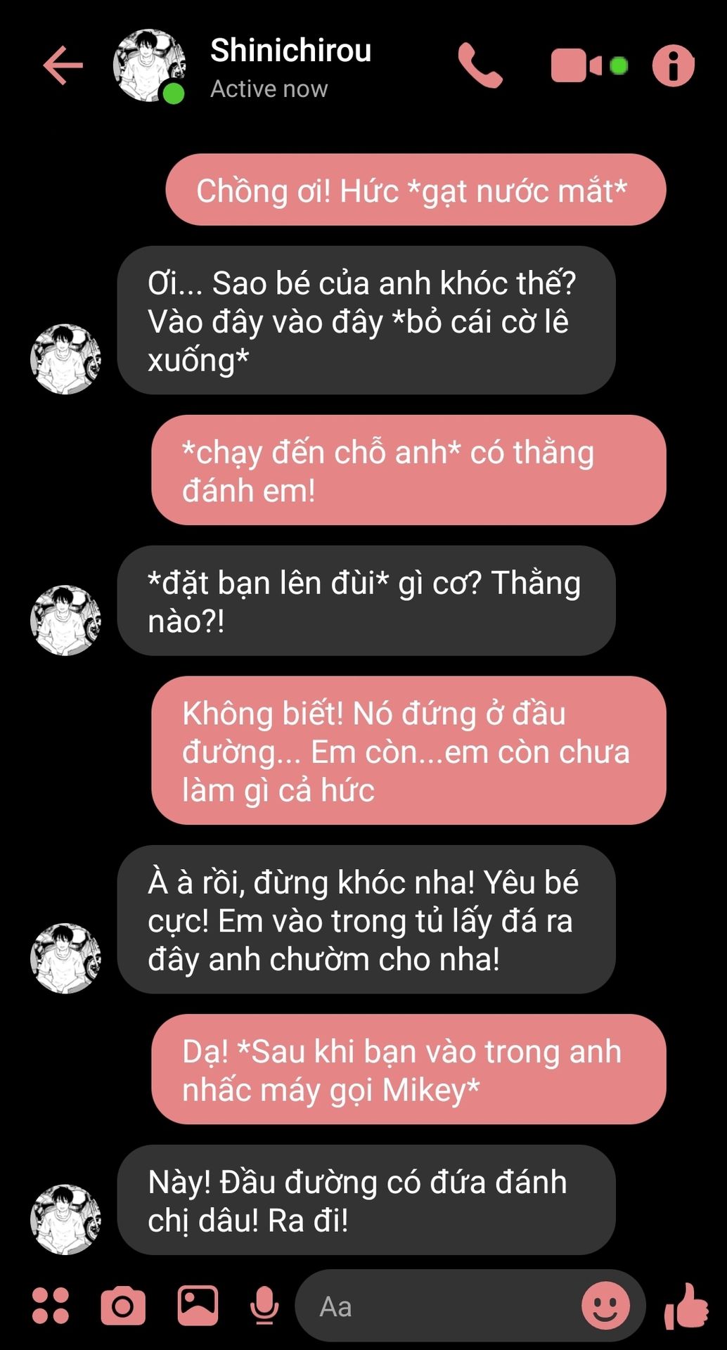 Bạn đang trên đường đi đến nhà kho - nơi mà Phạm Thiên tụ họp để đòi Sanzu về với mình. Đi giữa đường thì bạn vô cớ bị bắt nạt thế là từ đòi anh về bạn lại đòi anh đi đánh thằng kia. Tất nhiên là anh đi! Vợ anh mà!