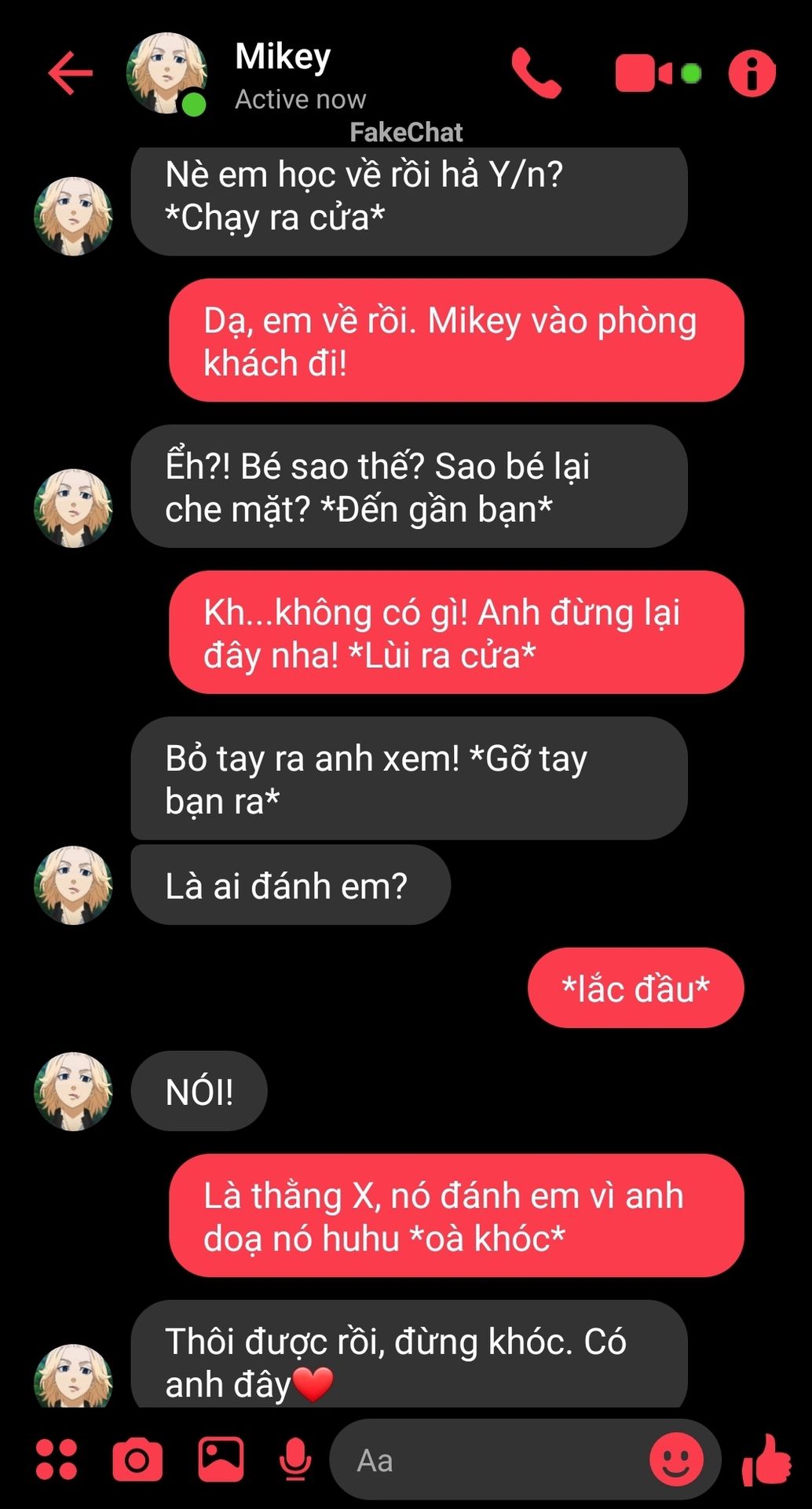 Mikey: nè, ăn đi cho đỡ đau Y/n!