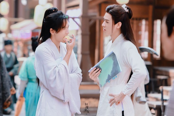 Hôm nay, Cún nhỏ không có cảnh quay vào buổi sáng nên đầu giờ chiều mới tới. Lúc cậu đưa táo cho anh bạn Mèo vẫn còn chưa tẩy trang, vừa cầm táo liền đưa lên miệng gặm luôn, Cún nhỏ muốn cản lại mà không kịp. Cậu lườm anh, môi hơi dẩu lên "Anh ăn cả son luôn rồi kìa!" sau đó cướp lại quả táo từ tay bạn Mèo, cẩn thận bổ thành từng miếng nhỏ, lại hô biến ra một cái cốc giấy bỏ vào. Măng cụt mèo vừa rón rén lại gần cái cốc, Cún nhỏ lại đột nhiên hô lên "Anh rửa tay chưa đó?"