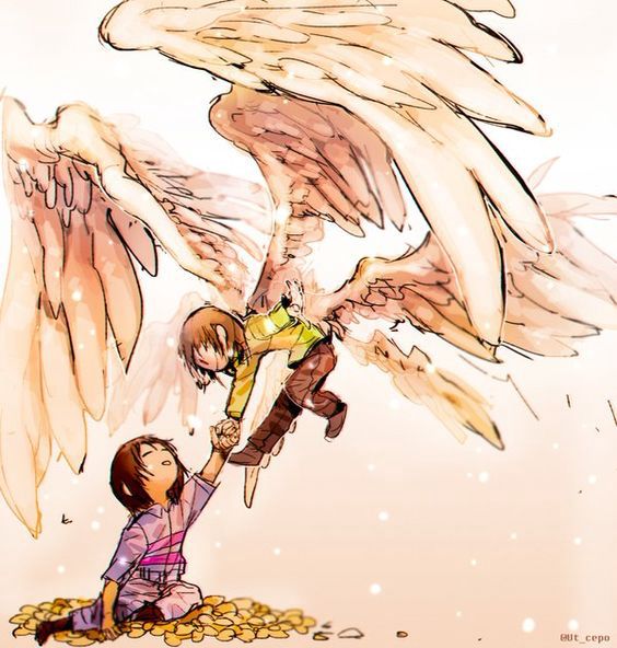 Chara quỳ xuống, ôm Frisk vào lòng, đặt một nụ hôn nhẹ lên trán cô bé đang thiu thiu ngủ, một giấc ngủ chập chờn. Ngay từ đầu Chara đã biết, Sans là một kẻ cuồng sát sở hữu sức mạnh kinh khủng, có thể thảm sát mọi timeline. Ha! Thật giỏi diễn kịch đóng vai phụ của Underworld, làm một bộ xương lười biếng thích đùa như một tên dở hơi. Tâm can hắn cũng chẳng yêu thương Frisk mấy. Còn Frisk? Ngu ngốc, tuy lúc nào cũng bị những con quái vật quái đản nơi này làm tổn thương, vậy mà vẫn chọn Mercy, vẫn chấp nhận đeo theo trái tim chứa đầy sự quyết tâm nhưng được dán đầy bông băng và urgo vô hình chắp vá lỗ chỗ đầy tổn thương, với mong ước giải thoát cho mọi quái vật. Thật ngu ngốc :)
