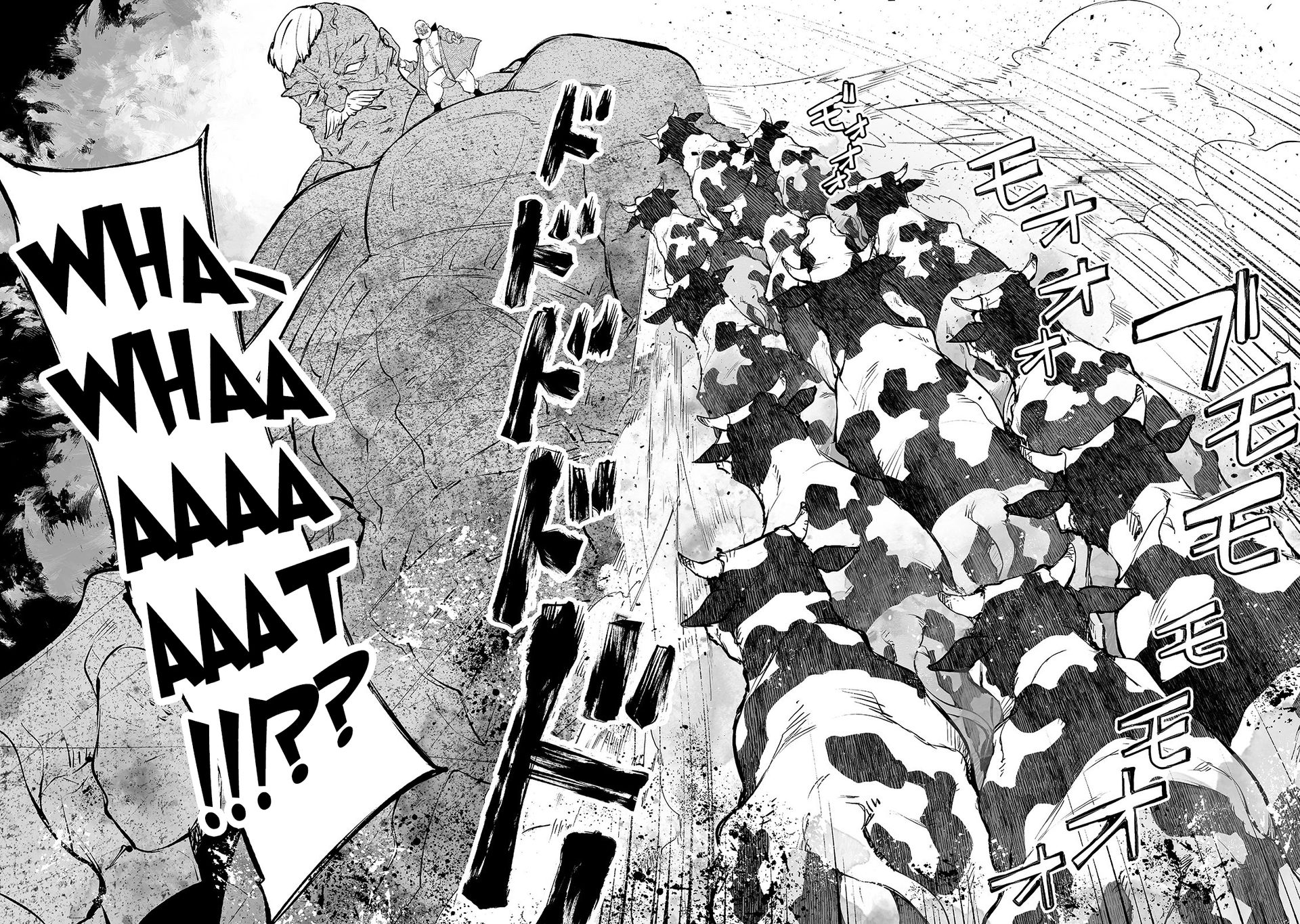 Và ngay lúc Jaikov chuẩn bị chế giễu ngài ấy vì hành động vô dụng đó, một hiện tượng bí ẩn đã xảy ra! Những miếng thịt ấy được một thứ ánh sáng trắng bao bọc, và chỉ trong tích tắc, chúng đã biến thành vô số con『Bò』 trưởng thành――!