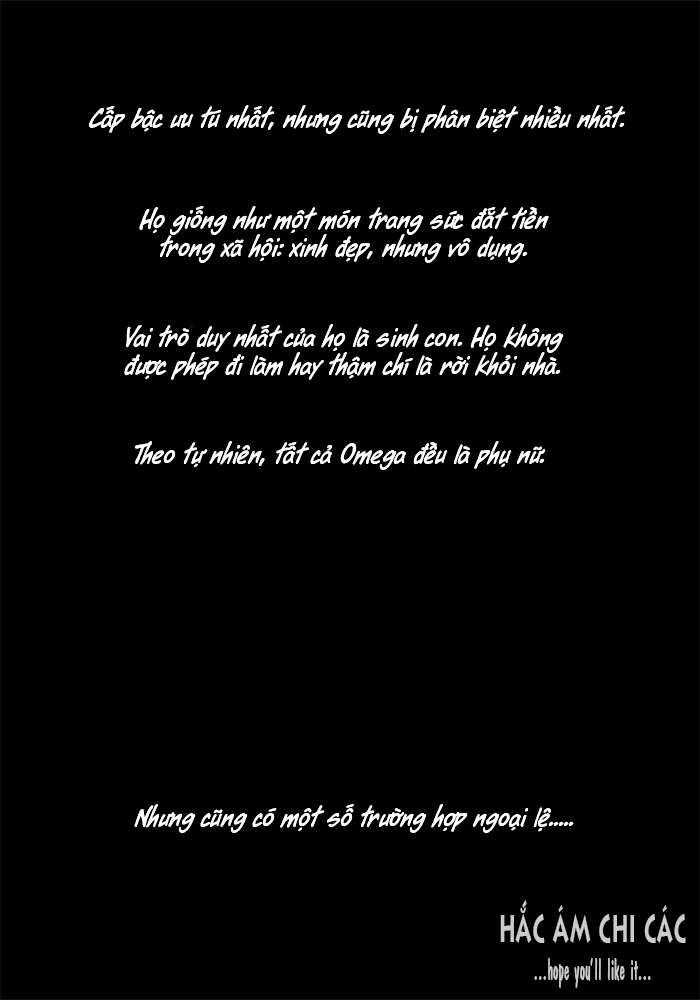 Chào, tôi là Phác Chí Mẫn và tôi hiện giờ đang là 1 kẻ thất nghiệp làm giết thời gian tại quán coffe nhỏ, cầm tấm bằng loại khá, khoa ngoại ngữ chẳng giúp tôi được cái gì cả. Nhưng, đó không phải là điều tôi luôn căm ghét, điều tôi luôn khiến tôi chán ghét bản thân mình chính là.... sinh ra trên thân thể omela vô dụng này, nếu tôi là một người phụ nữ, bản thân sẽ thật hãnh diện vì được gọi là nữ hoàng. Nhưng, tôi lại là một Omela nam hiếm có, chỉ cần nghĩ đến bản thân phải nằm dưới hạ thân của người đàn ông lại khiến tôi không khỏi chán ghét, ghê tởm bản thân. Nói về cuộc đời tôi thì đúng là một bi kịch, à mà ko phải thảm thương cho lắm, tôi có một cô em gái tên Thẩm Nguyệt trải qua 16 tuổi xuân - độ tuổi đẹp đẽ, ngây thơ, trong sáng nhất. Mẹ tôi qua đời khi em tôi lọt lòng từ đó mà bố tôi trở thành một con sâu rượu suốt ngày rượu chè cờ bạc và cũng từ đó mà tôi và em phải gánh một khoản nợ khá lớn. Phải chăng đã quá đỗi khổ sở với tôi rồi