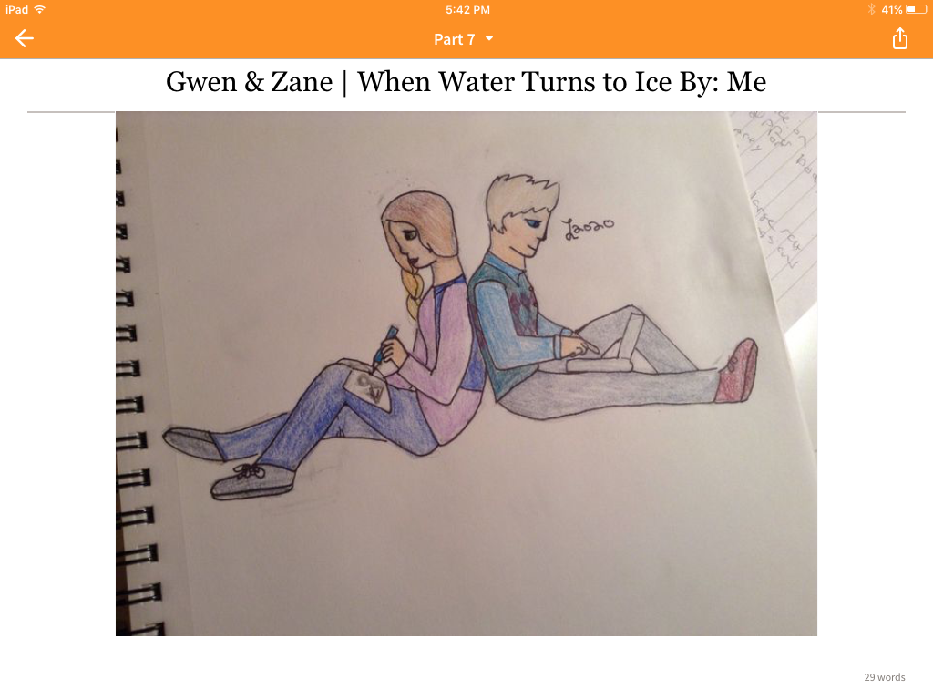 Here is a drawing I made of Zane and Gwen I screenshoted from my fanart book. It's not perfect but I'm proud.